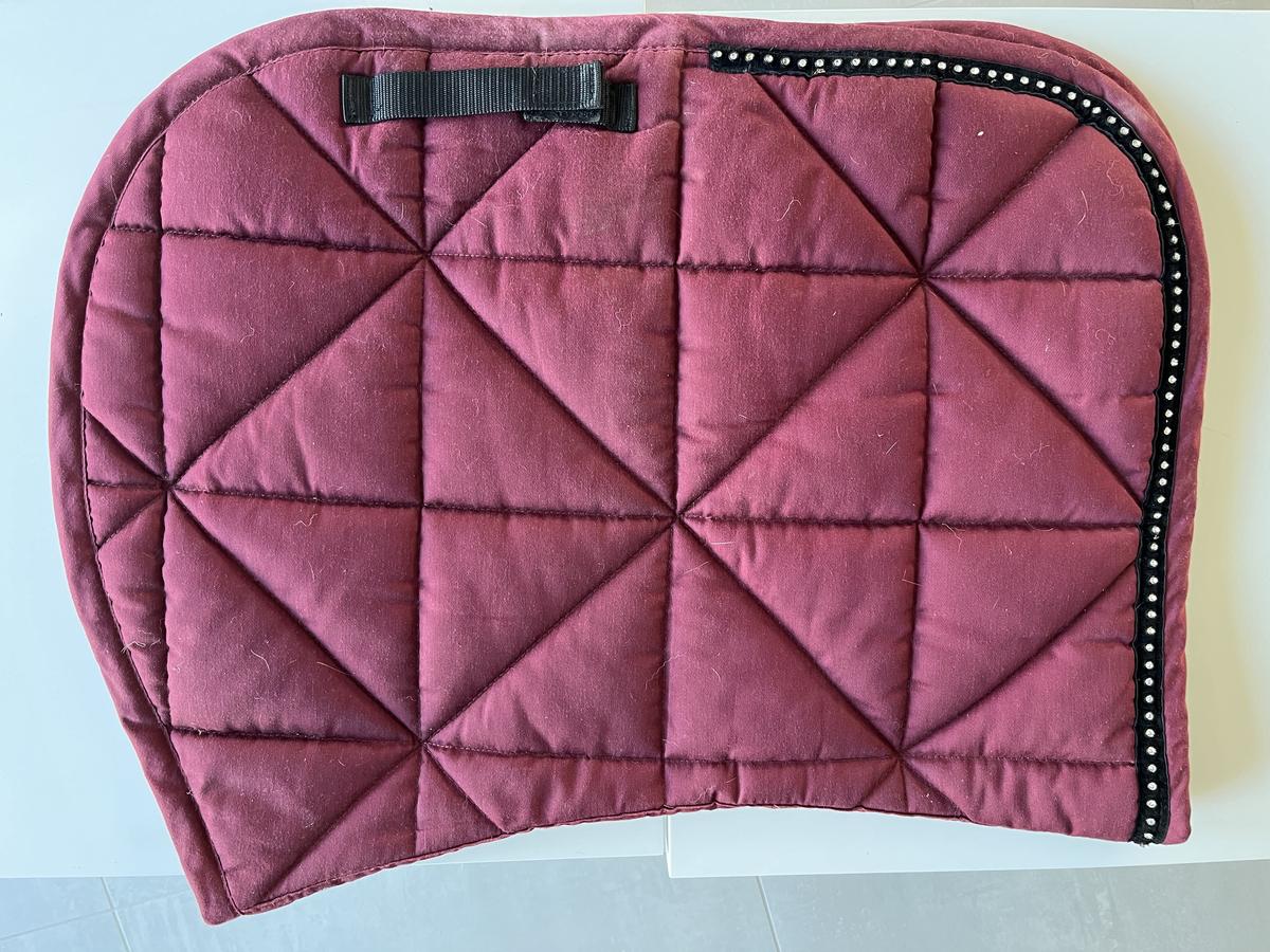 Tapis décathlon bordeaux avec des strass. Taille cheval aucun défaut. En bon état.