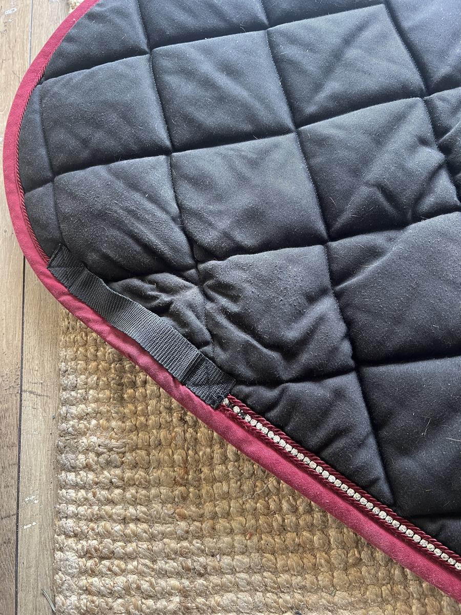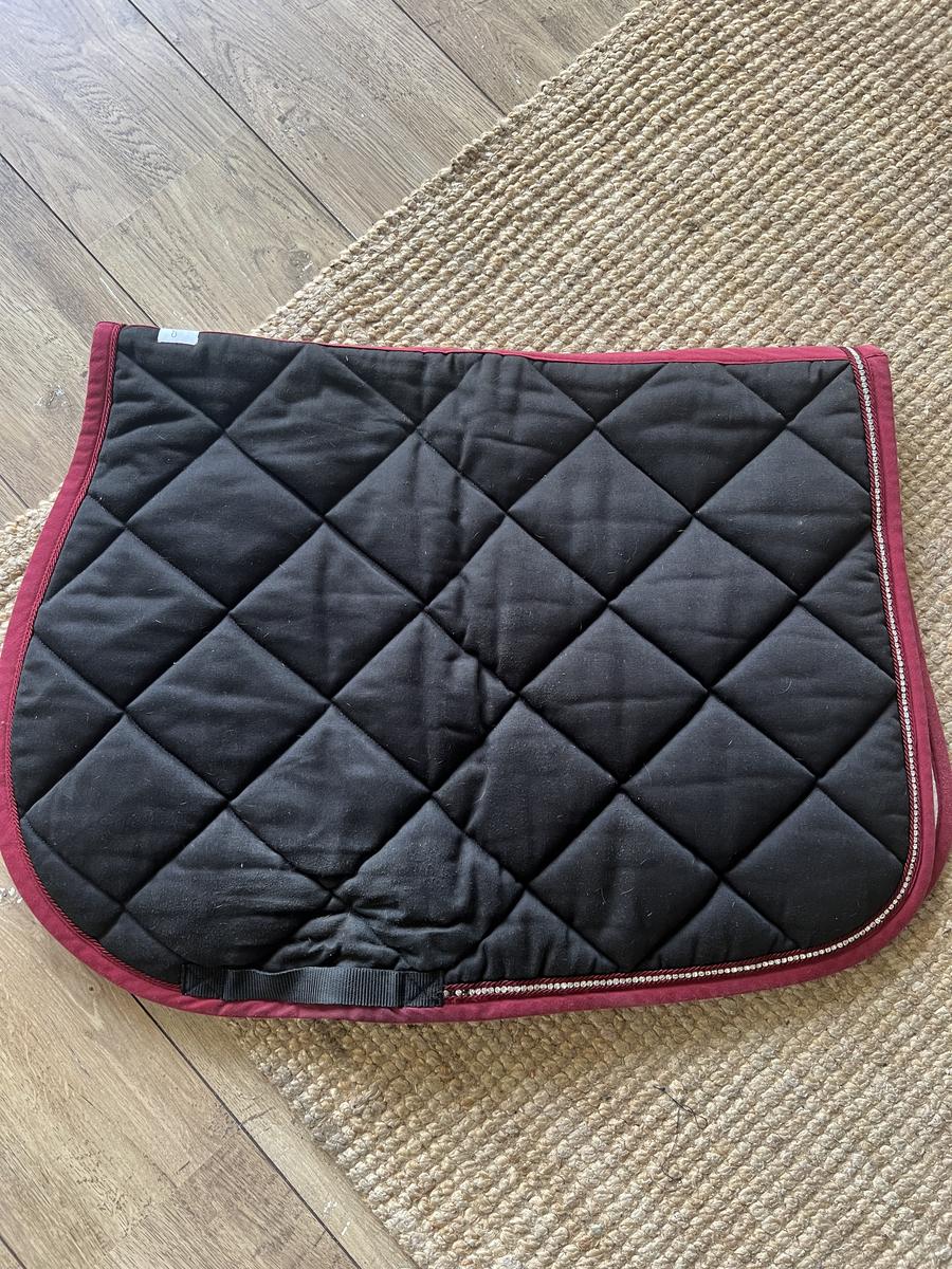 Tapis d’équitation Cristina sports porte seulement 2/3 fois en concours, très bon état, noir lisere bordeaux et strass