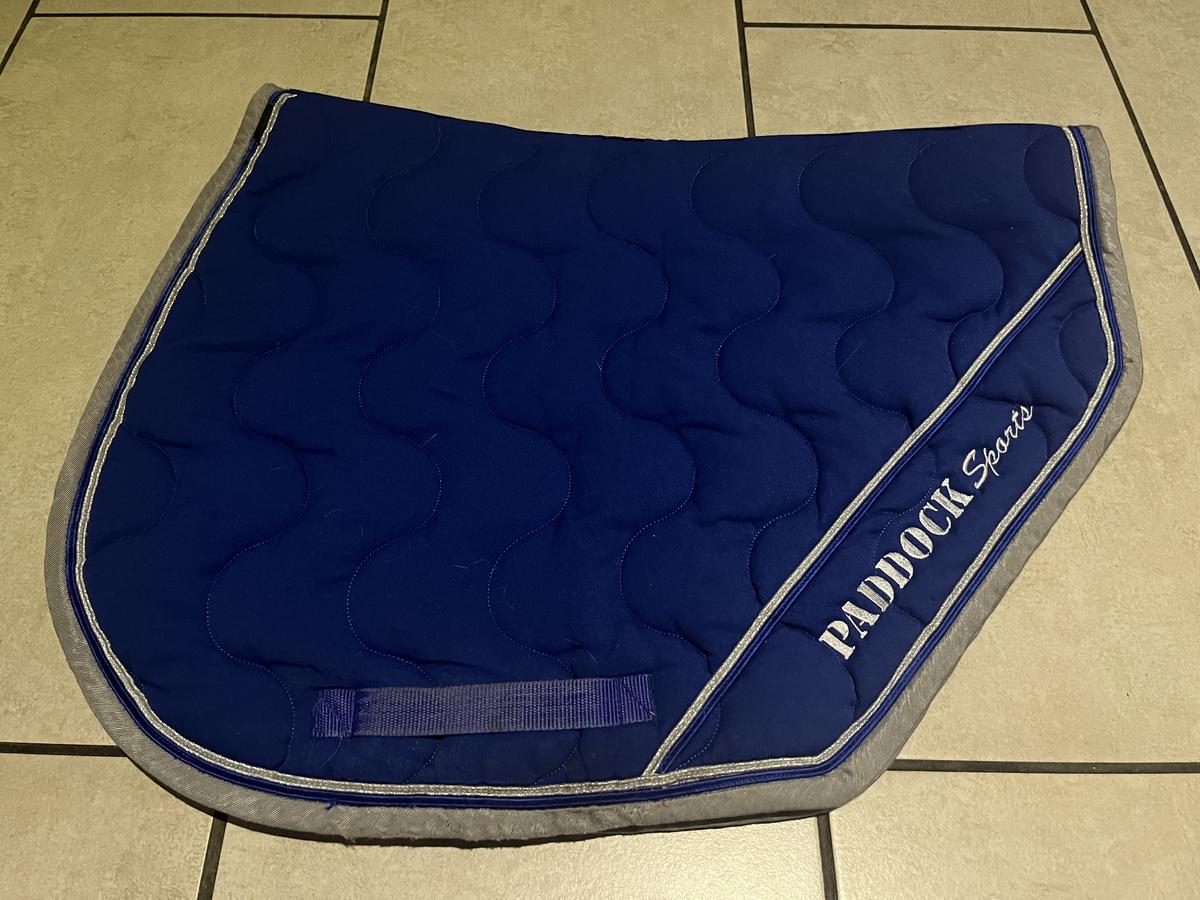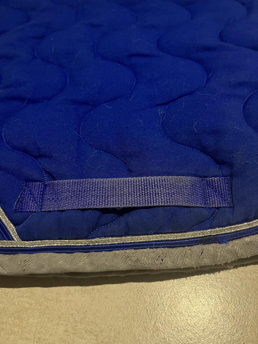 Tapis bleu roi de marque Paddock sport, coupé sport, acheté il y a quelques années lors du Jumping de Bordeaux sur le stand Paddock, pour le prix de 95€.