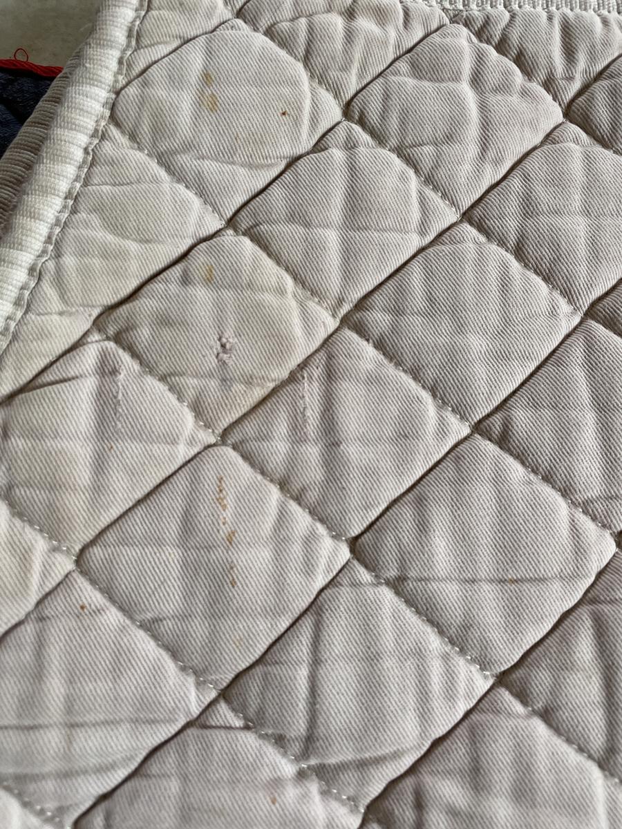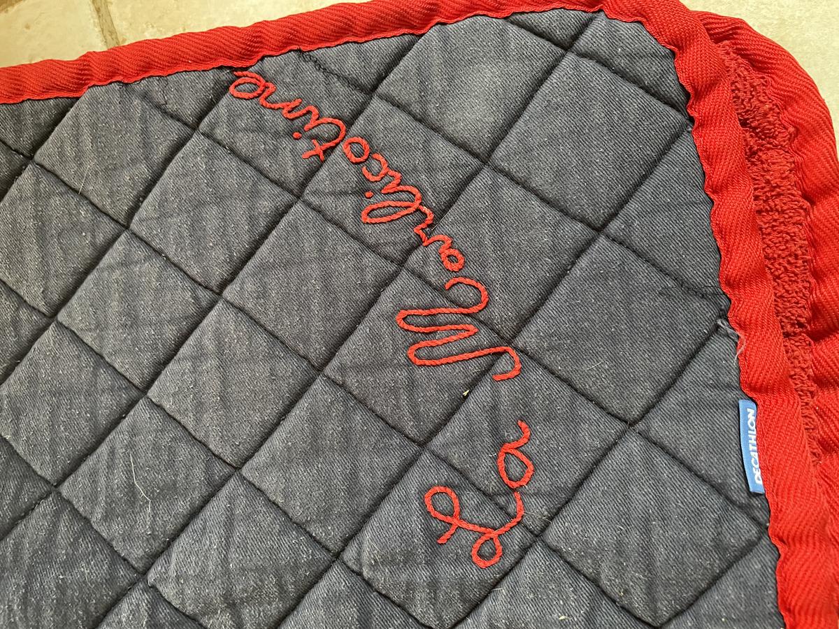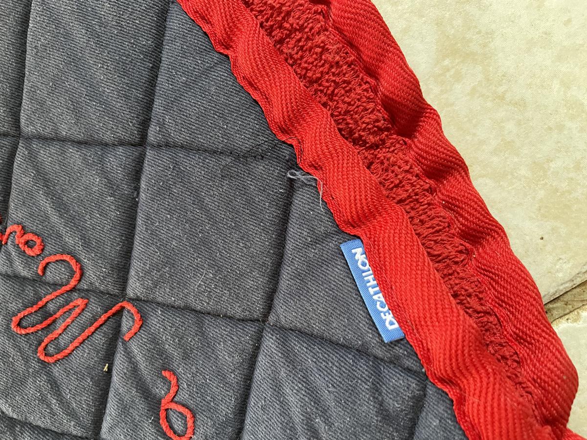 Il y a brodé « La Marlicotine » en rouge d’un côté.