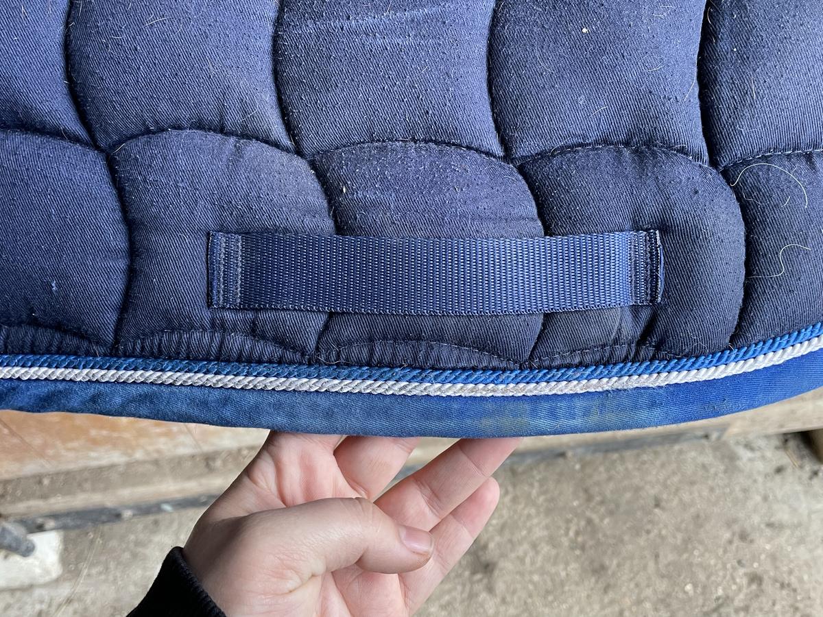 Tapis harcour bleu marine, coupe mixte. en excellent état, porté environ 10 fois. passage de sangle niquel, sera lavé avant envoi.