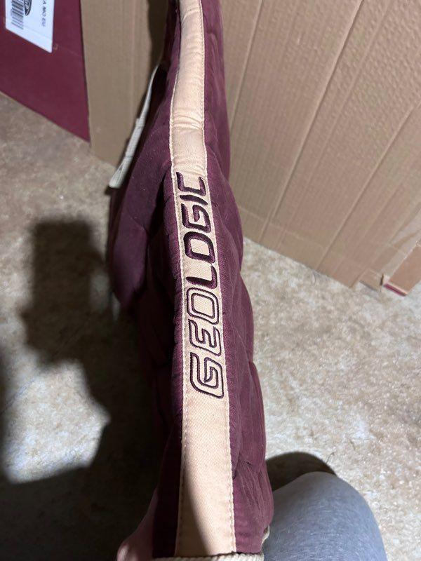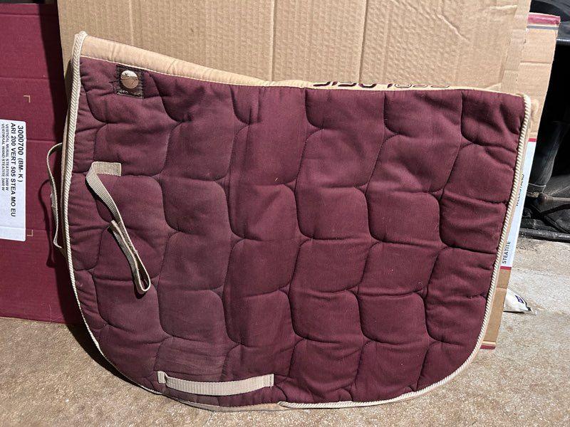 A vendre un tapis d’équitation bordeaux de la marque Geologic avec les sangles scratch afin de le maintenir à la selle.