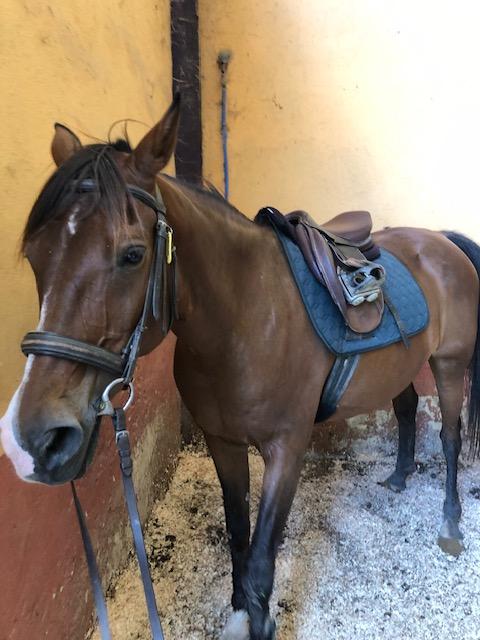 Tapis de selle mixte et réversible vert/bleu de la marque Fouganza