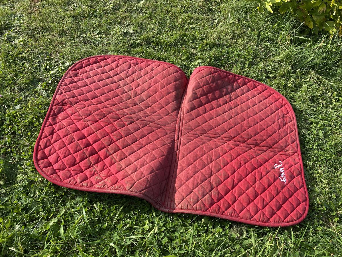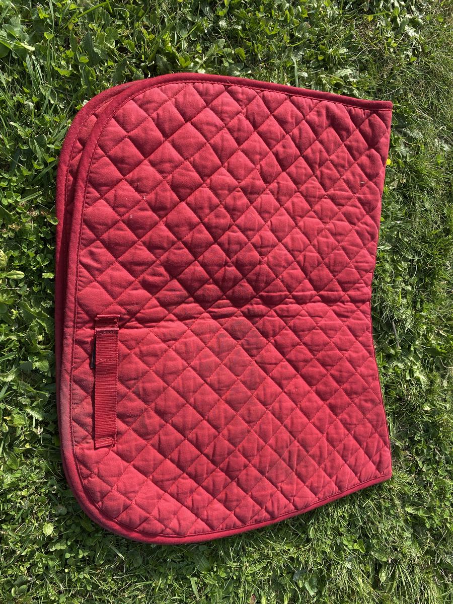 Je vend mon tapis de selle taille cheval rouge. Un magnifique tapis pour une Inès !