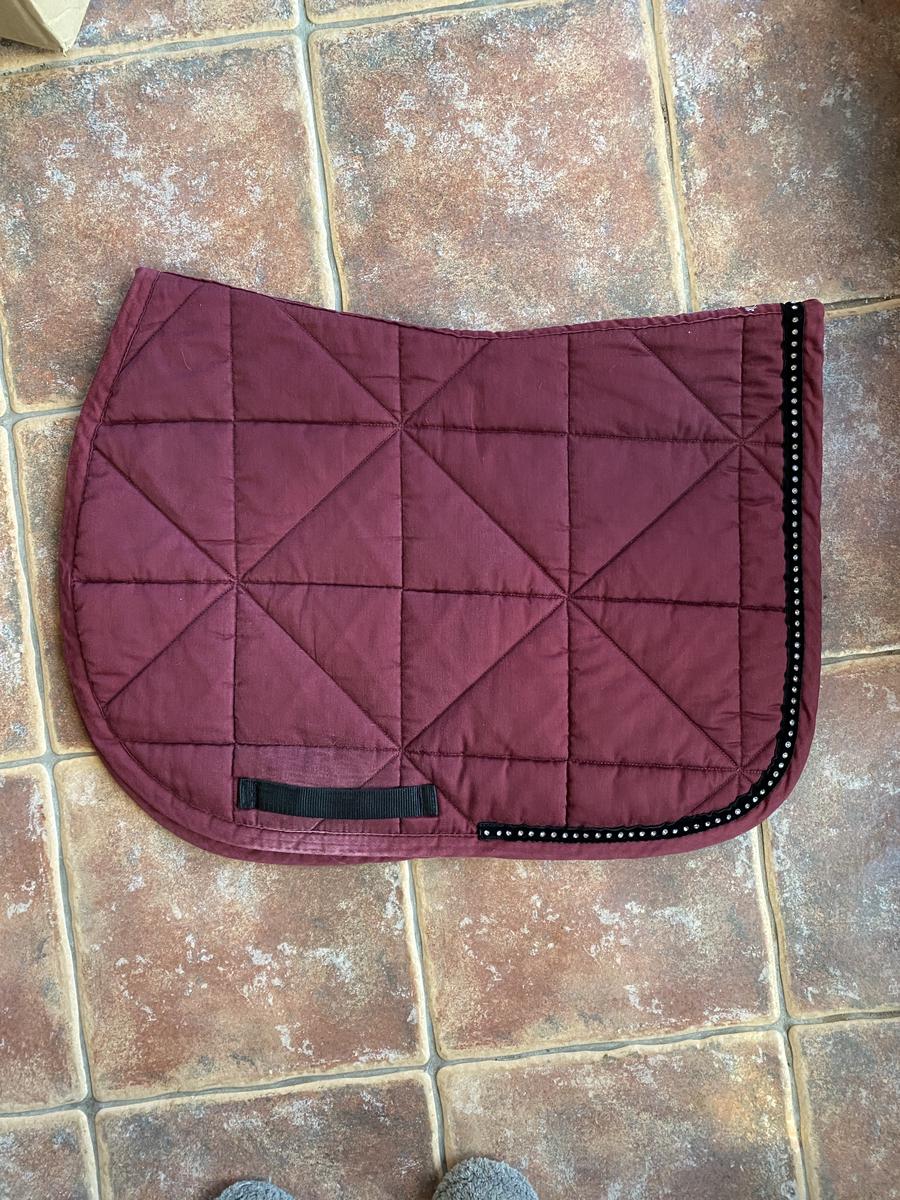 Tapis de selle mixte bordeaux avec liseré noir velours à strass, FOUGANZA.
