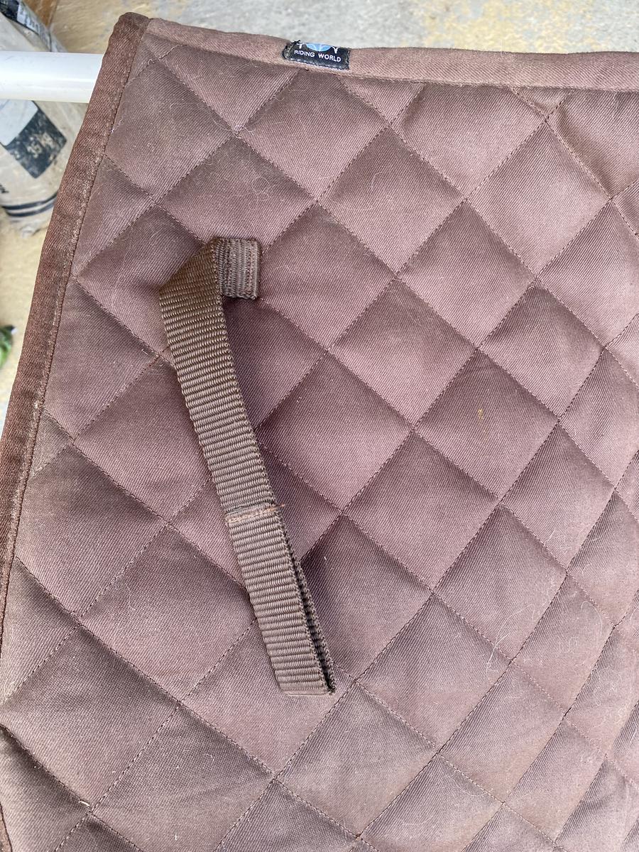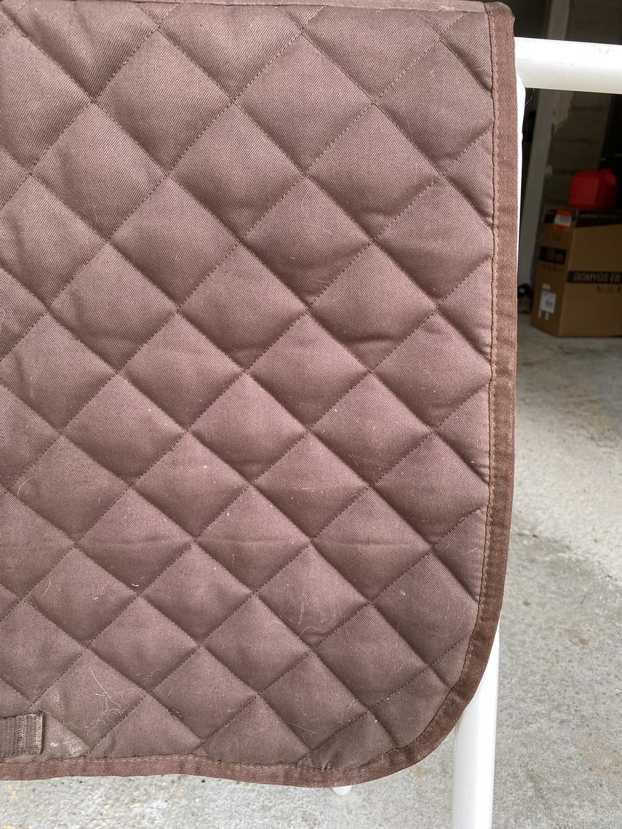 Tapis de selle Rinding World. Marron. Taille poney sans motifs. Utilisé quelques fois il y a deux ans ( un peu de poils a l’intérieur ) aucun trous. ( je ne sais pas de quel matière est l’intérieur……). Vente urgente.