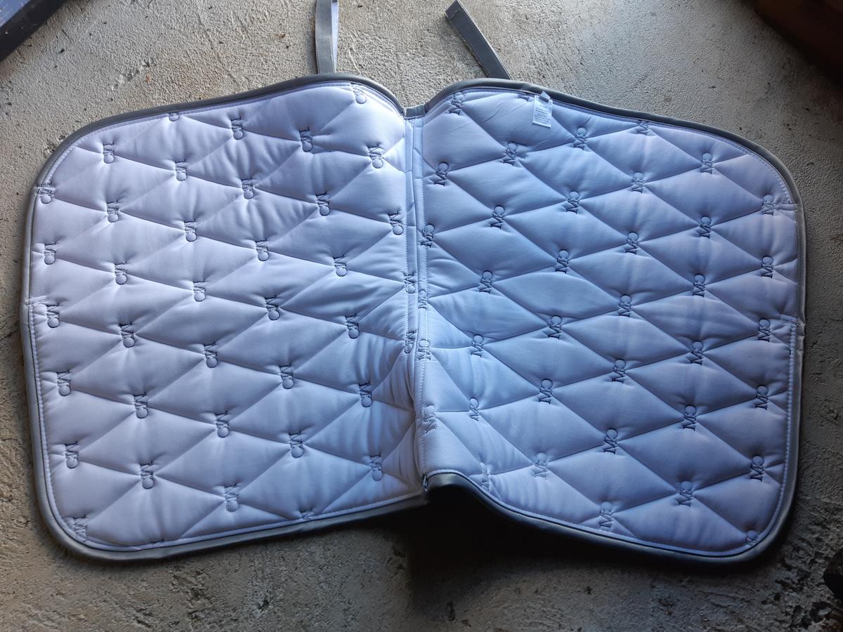 Je mets en vente ce tapis, il est en Taille Dressage. il est Gris avec écrit CM sur tout le tapis.