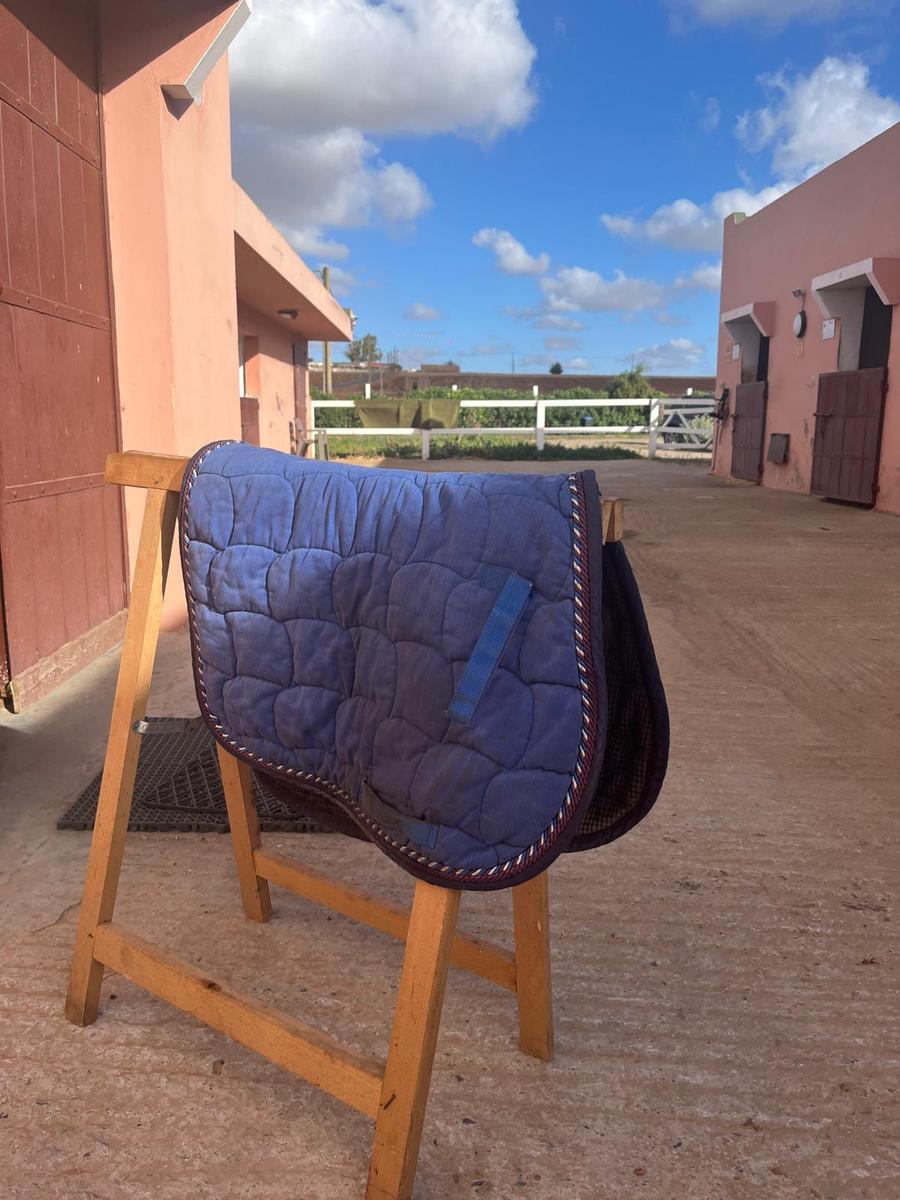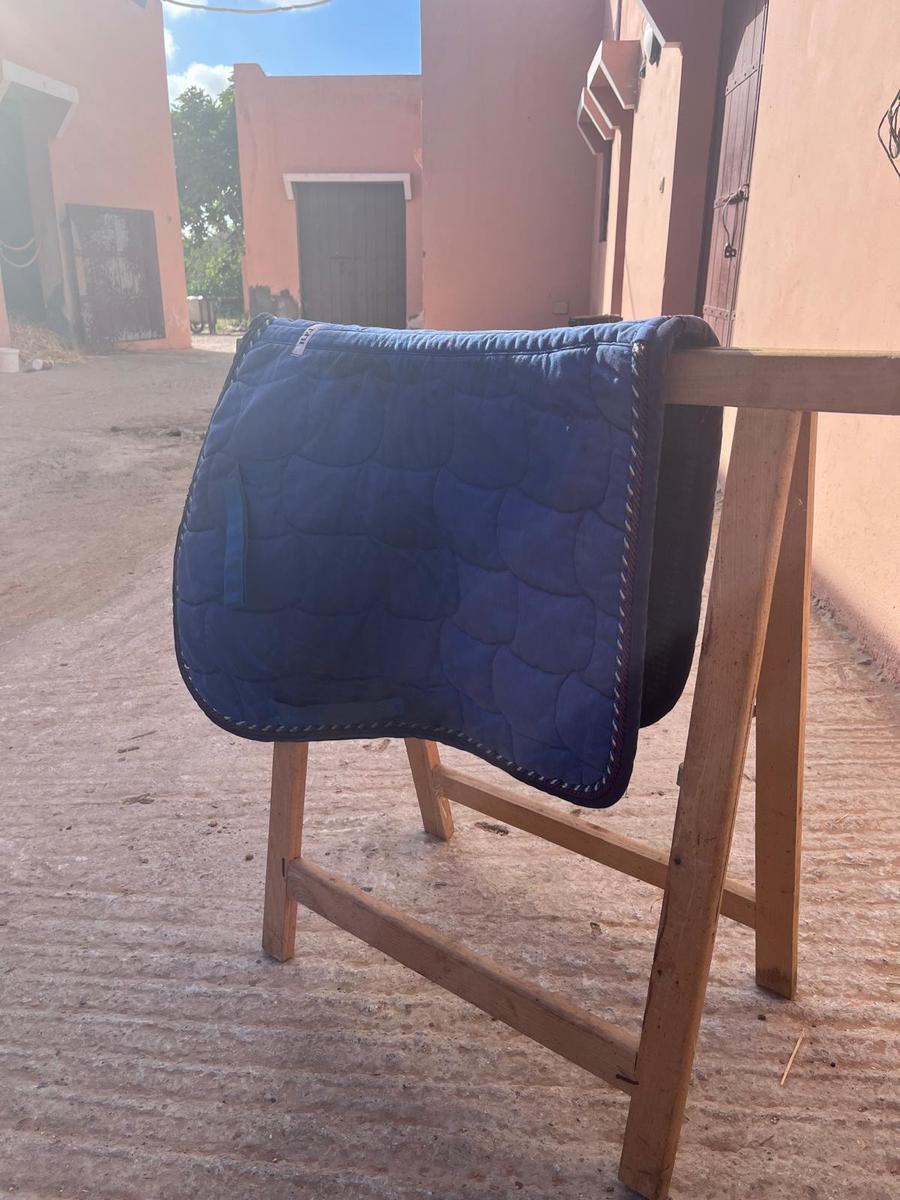 Tapis d'équitation bleu, taille cheval, marque HFI, à été utilisé plusieurs fois mais fonctionnel et en bon état.