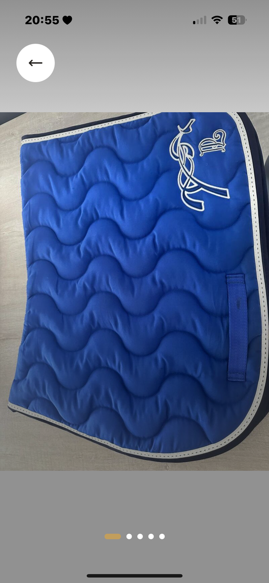 Tapis Pénélope Bleu roi acheté sur Ohlala Sellerie il y a 2 ans, porté quelques fois mais toujours bien entretenu. Une petite tache sur un côté mais très peu visible. Bon état