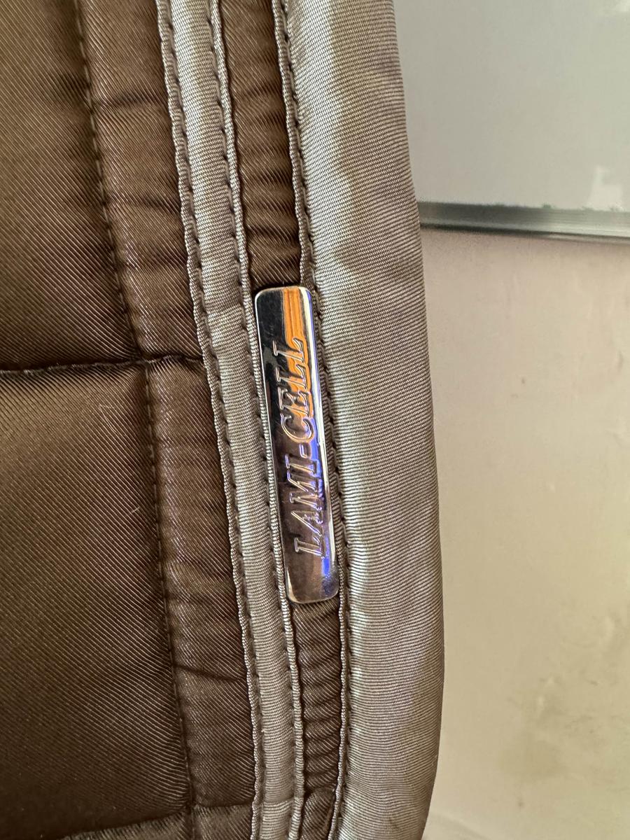 Tapis mixte marron satin de la marque Lami-Cell, taille cheval, passants à scratch, grands carreaux. Très bon état.