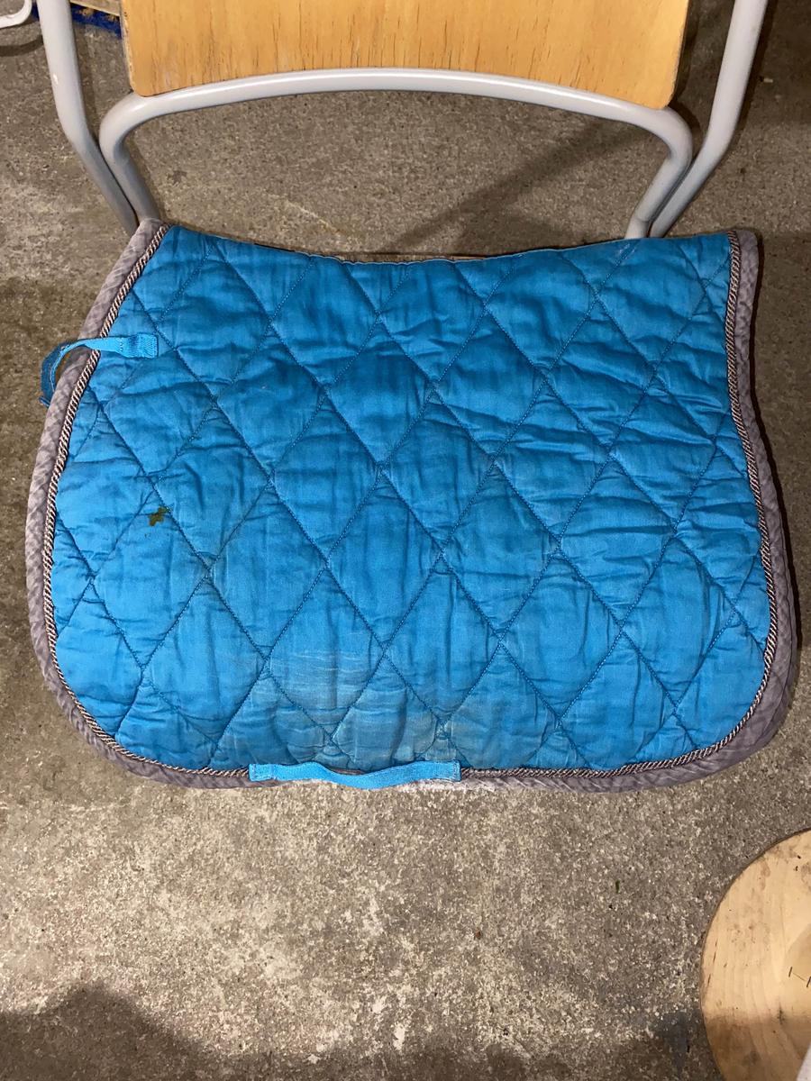 tapis bleu avec une petite tache un peu décolorée un peu abîmé au passage des sangles (prix négociable)