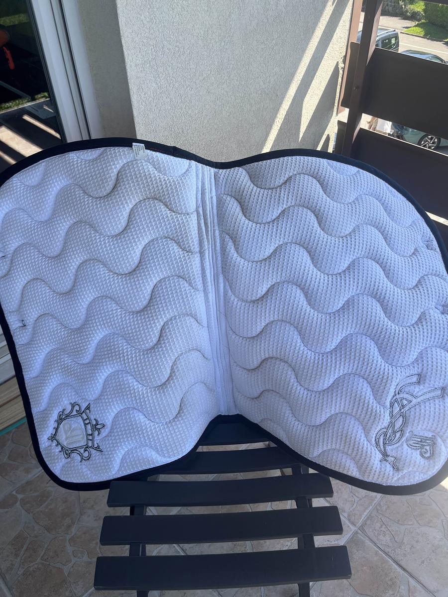 très bon état mais a quelque traces noires au niveau de la sangle et est légèrement abîmé au niveau de la selle mais ne se voit pas une fois la selle mise ( voir photo)