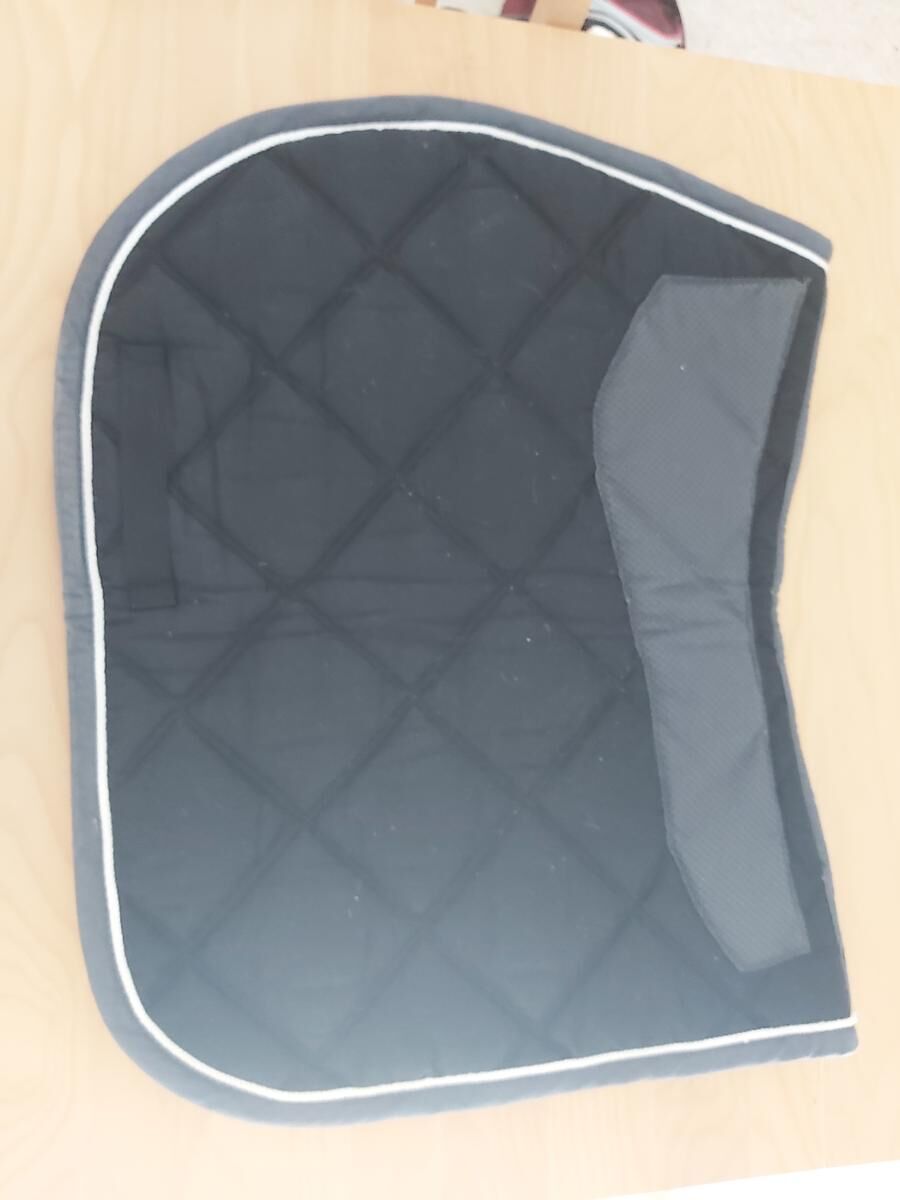 Un tapis Fouganza noir et gris avec du gris au niveau de la selle