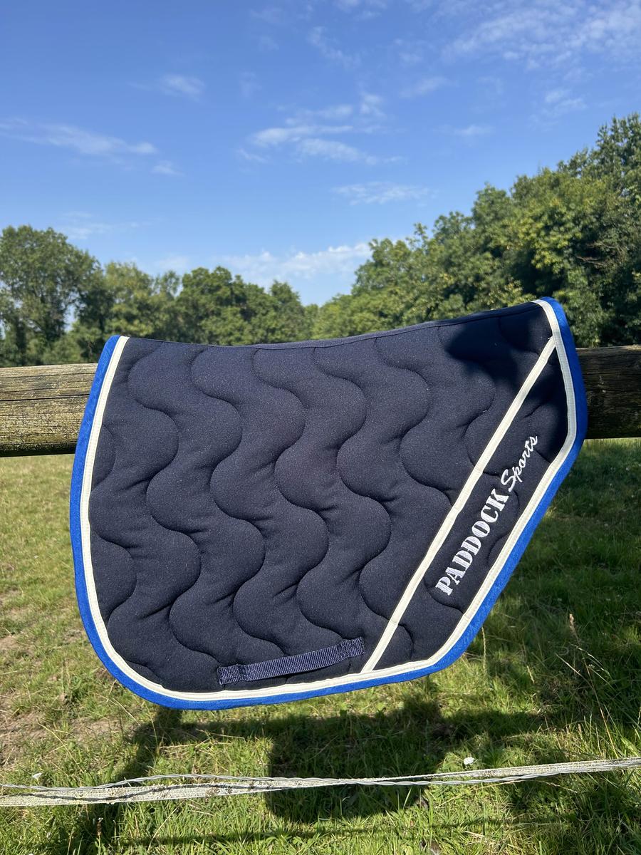 tapis paddock sport bleu marine avec les liserées bleu roi taille poney