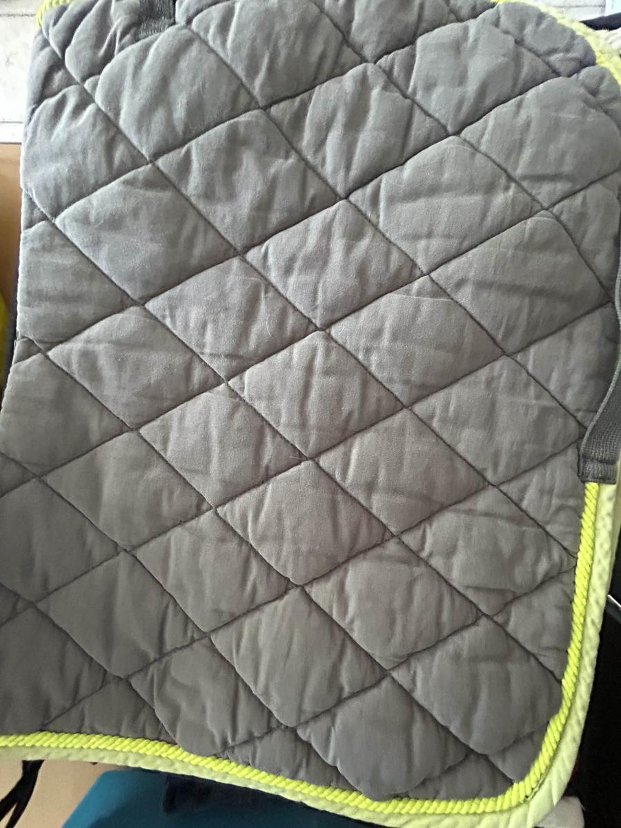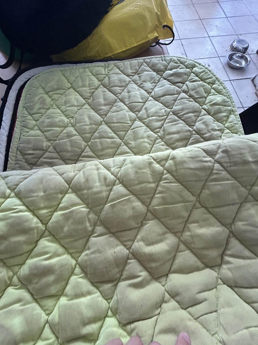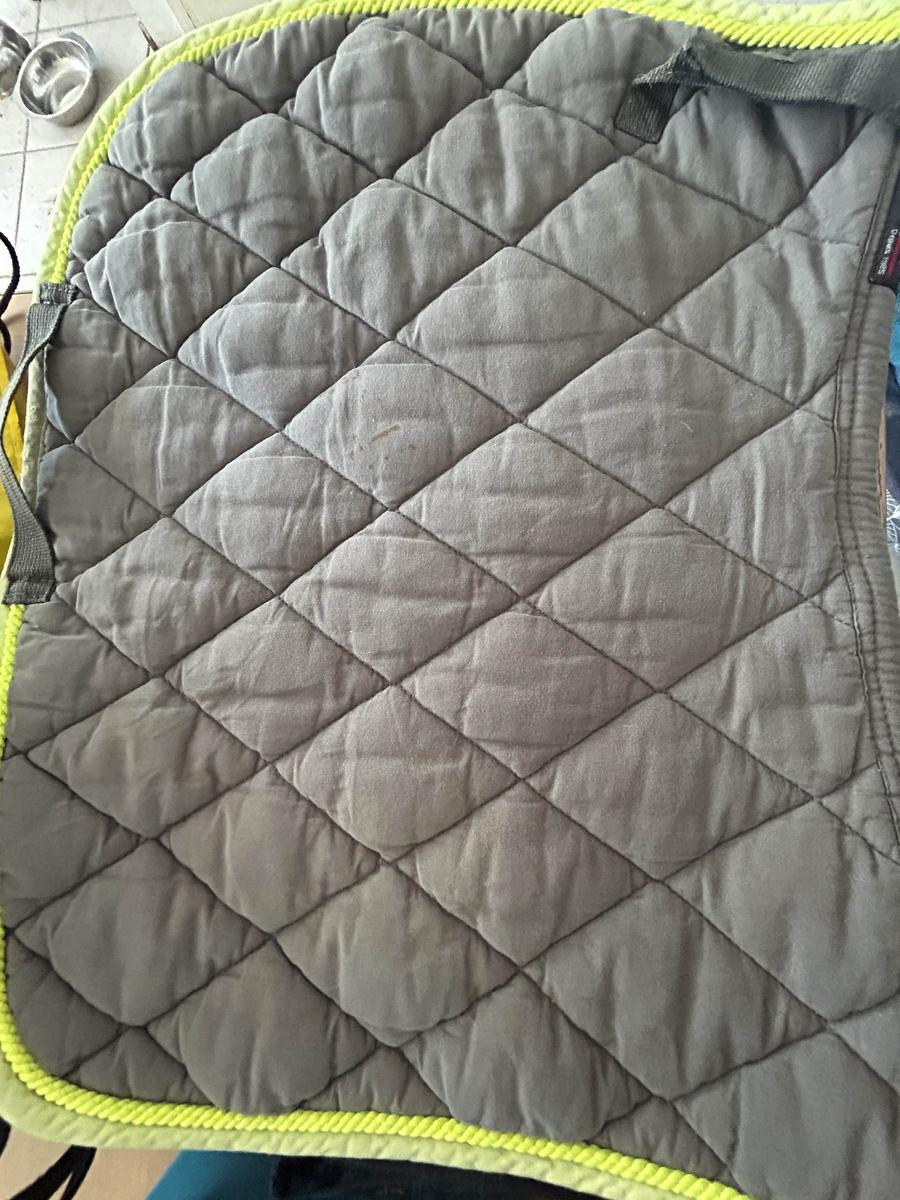 tapis équithème légèrement usé mais totalement utilisable il y a une tache à un endroit mais invisible sur le cheval car il y a la selle par dessus