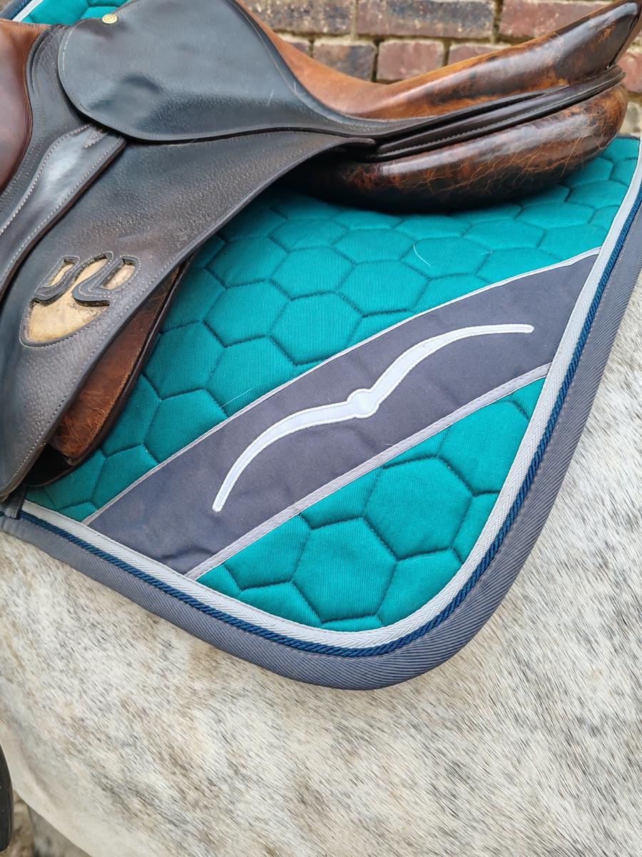Tapis animo bleu canard bord gris anthracite
