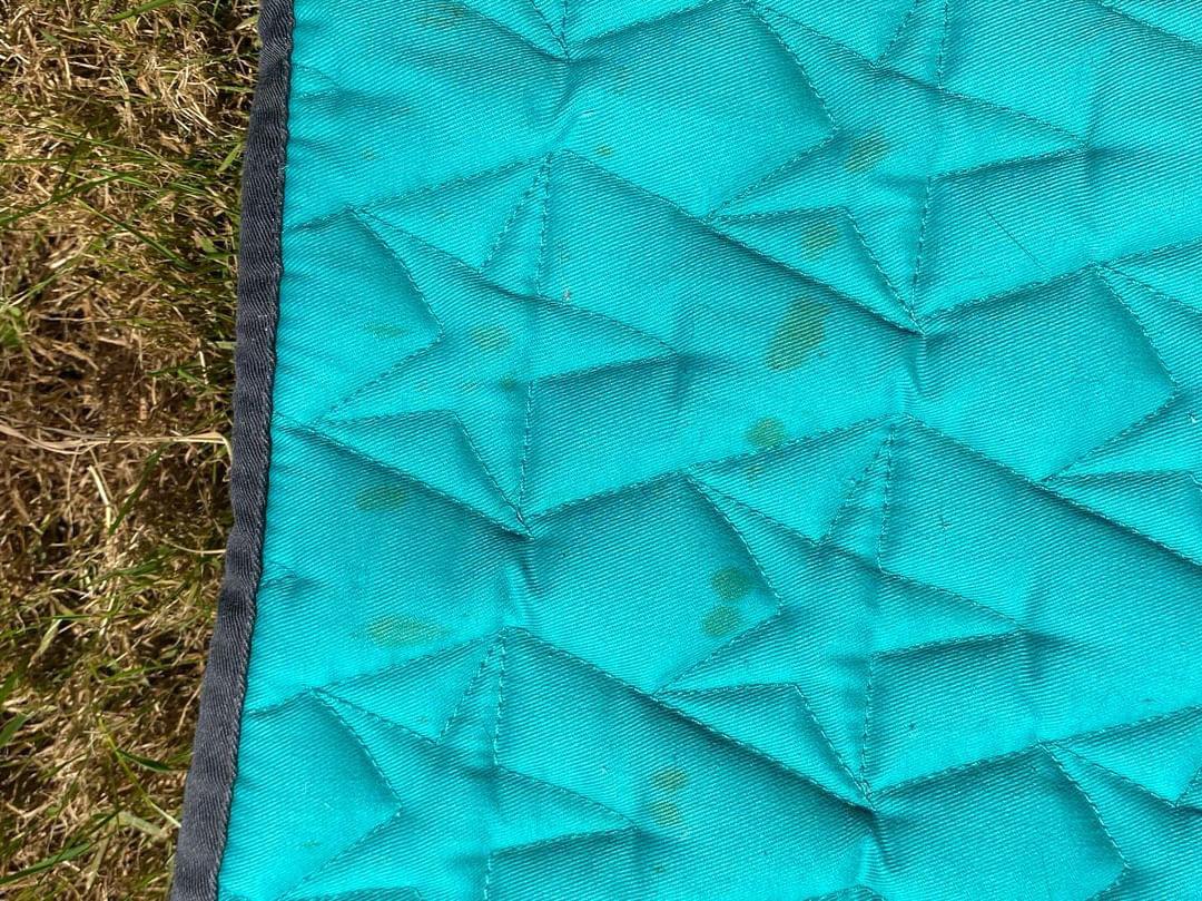 Tapis Fouganza vert, peu utilisé, le tissus est en très bon état mais il y a quelques tâches