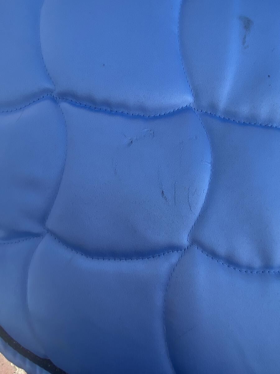 Tapis bleu equitheme utiliser quelque fois présente quelque tache