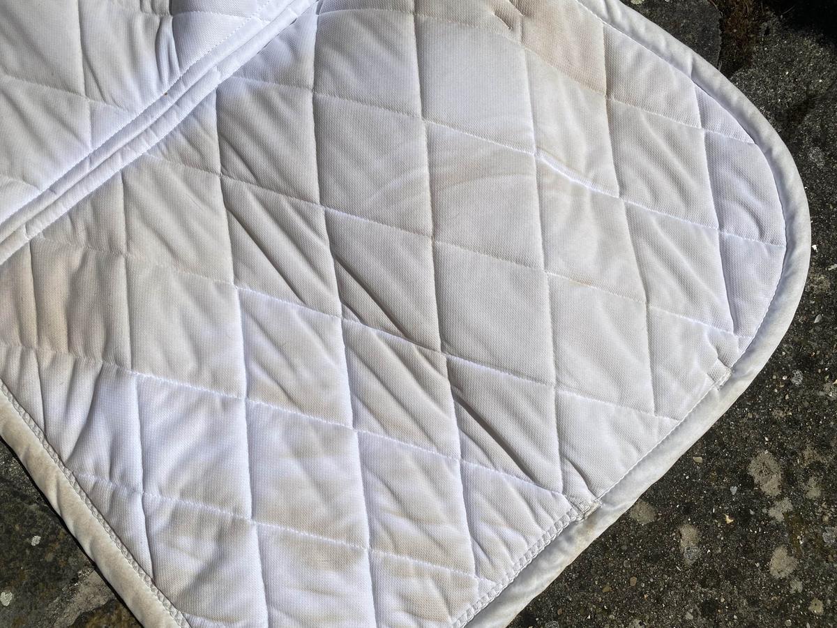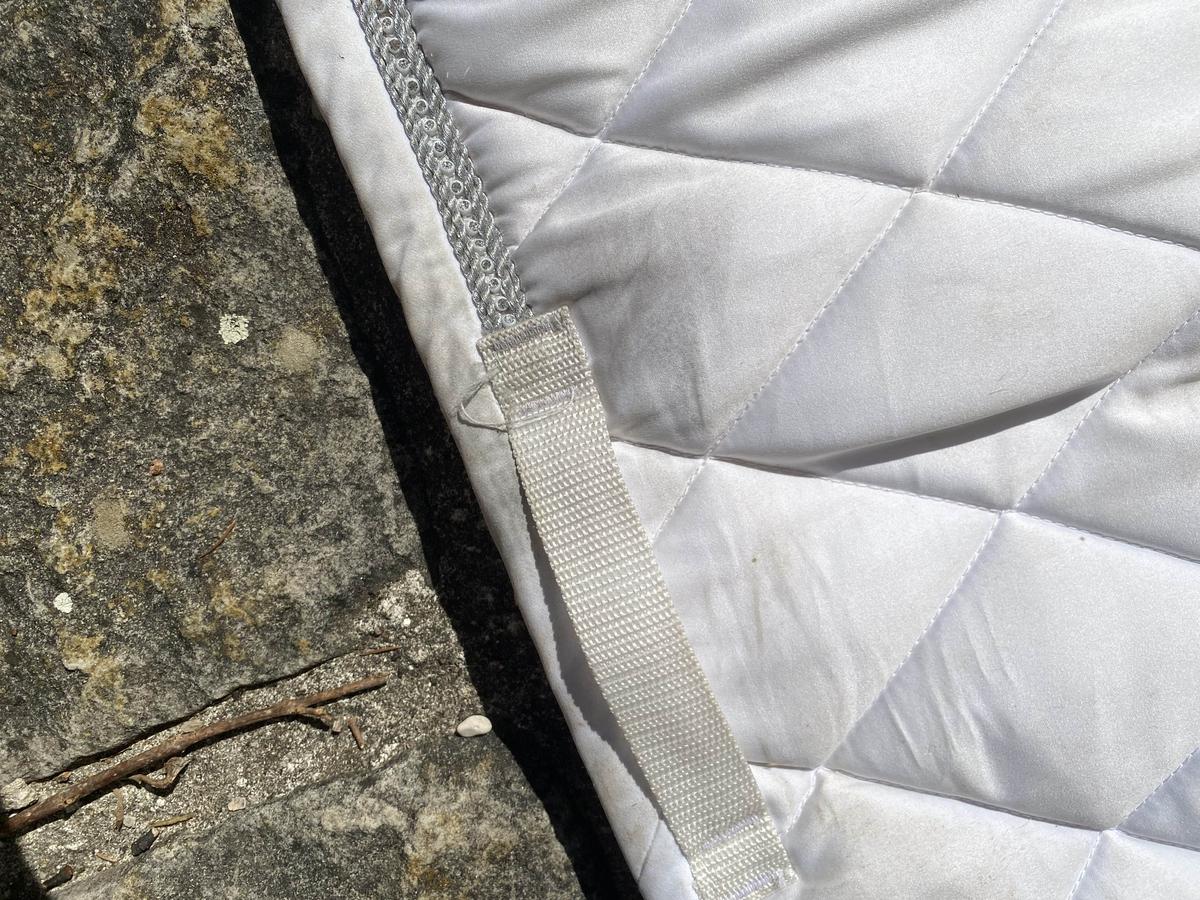 Tapis blanc sans marque, jolie bordure avec strass argenté.