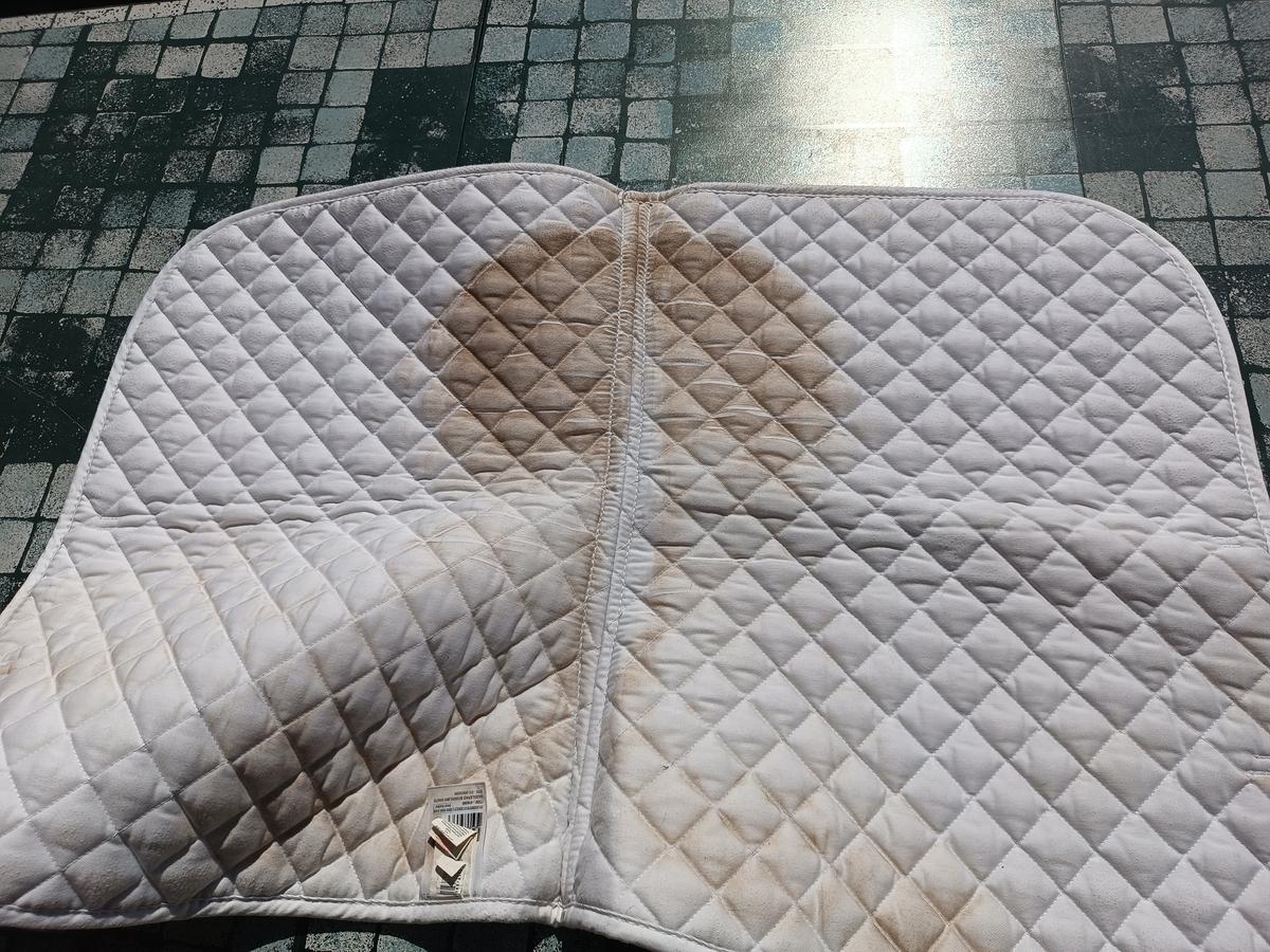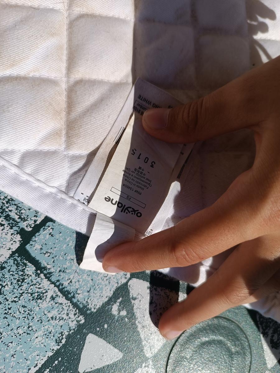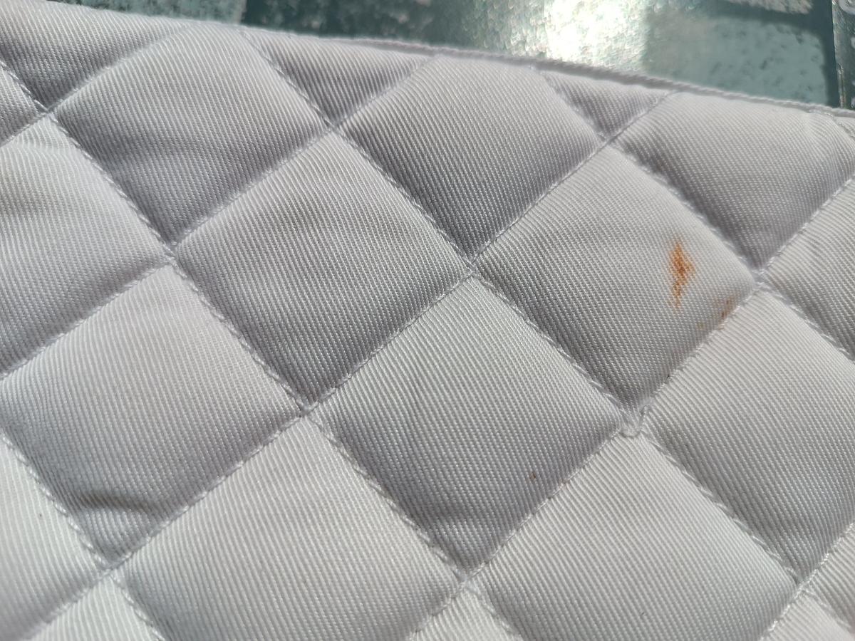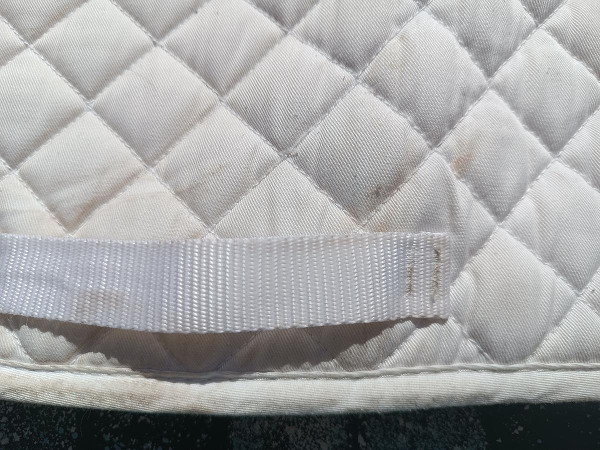 Tapis Fouganza blanc. Pas souvent porté. Petite tâche à l'extérieur et assez grande tâche à l'intérieur (poussière).