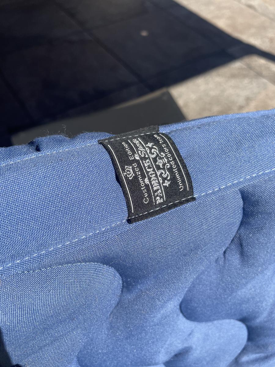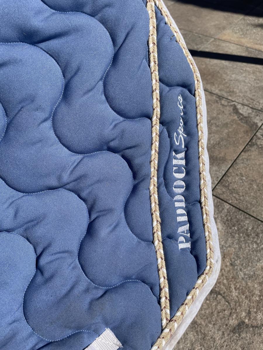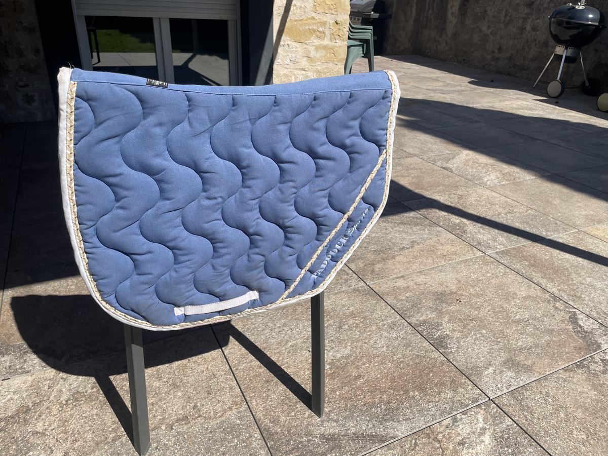 Tapis paddock sport bleu avec détail rose gold