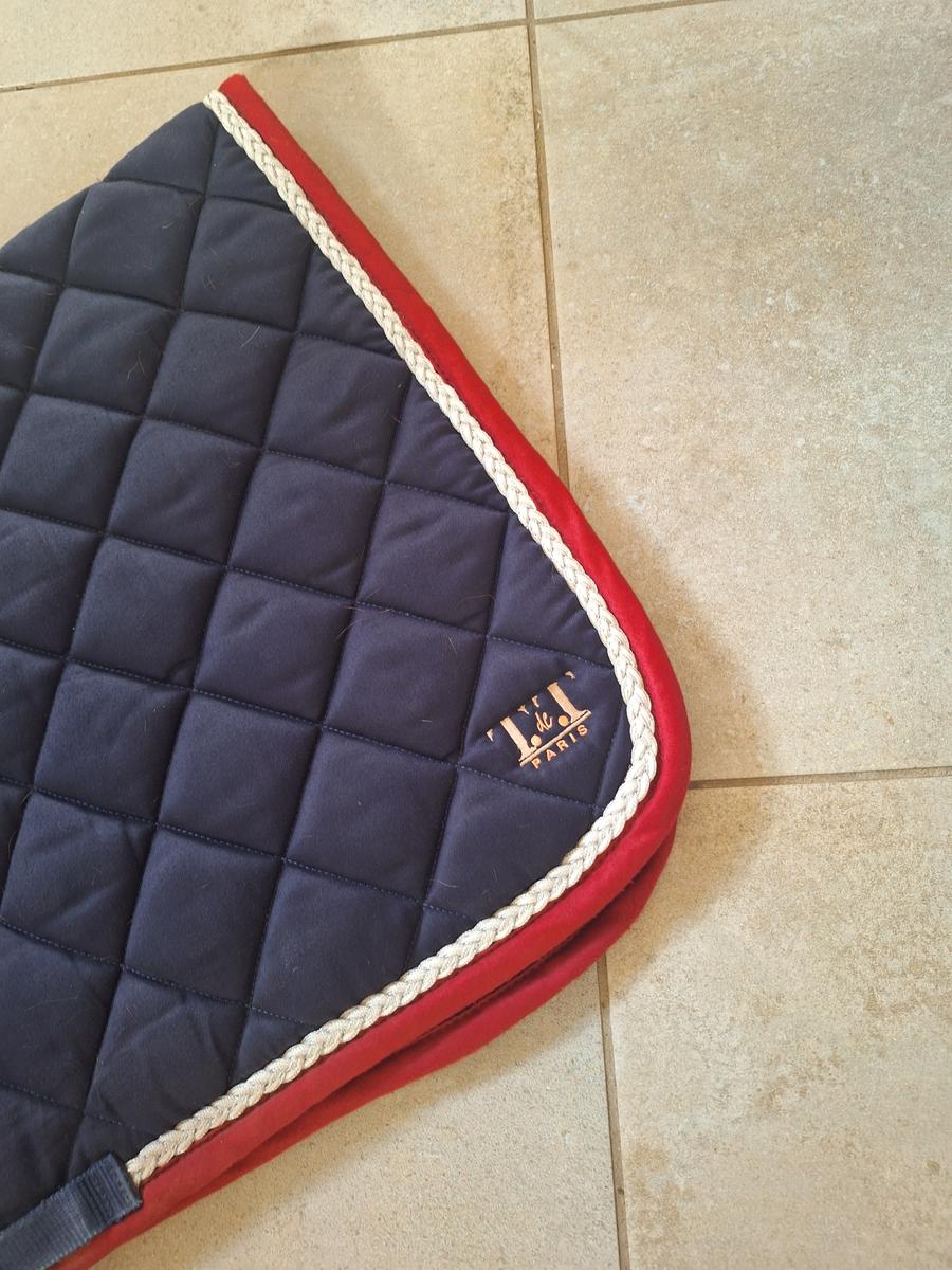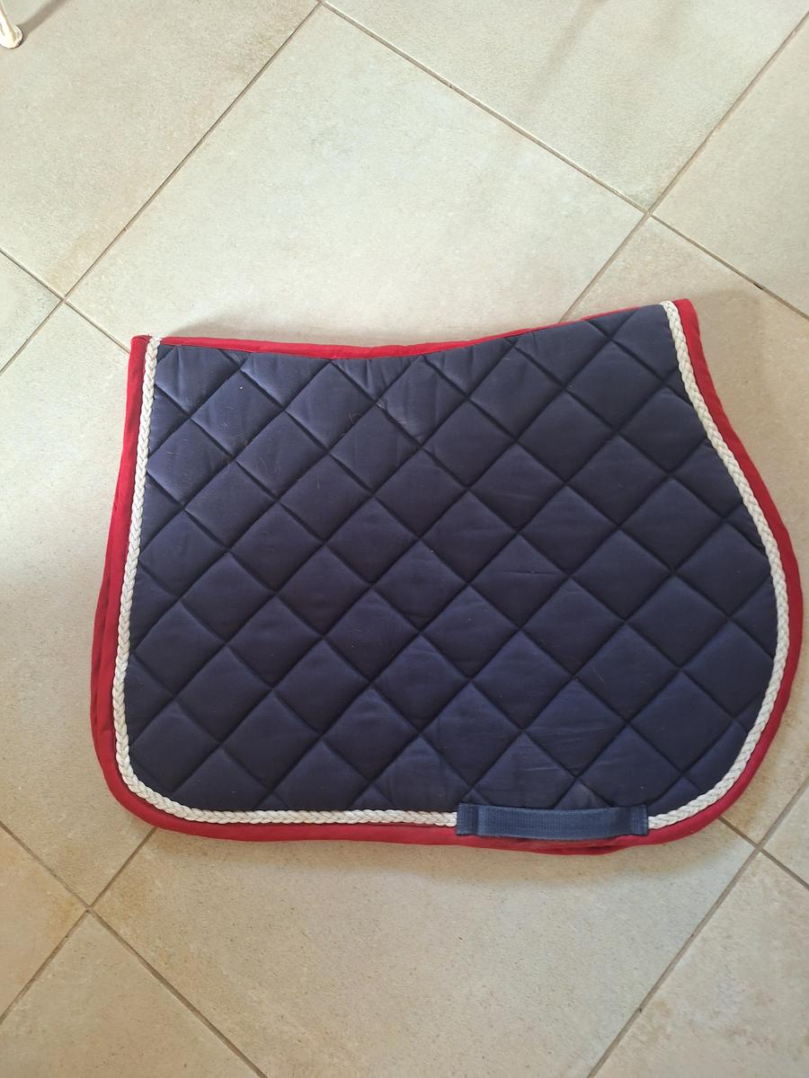 Tapis TdeT taille cheval bleu marine et rouge. Porté deux fois à l'occasion d'un concours. En très bon état.