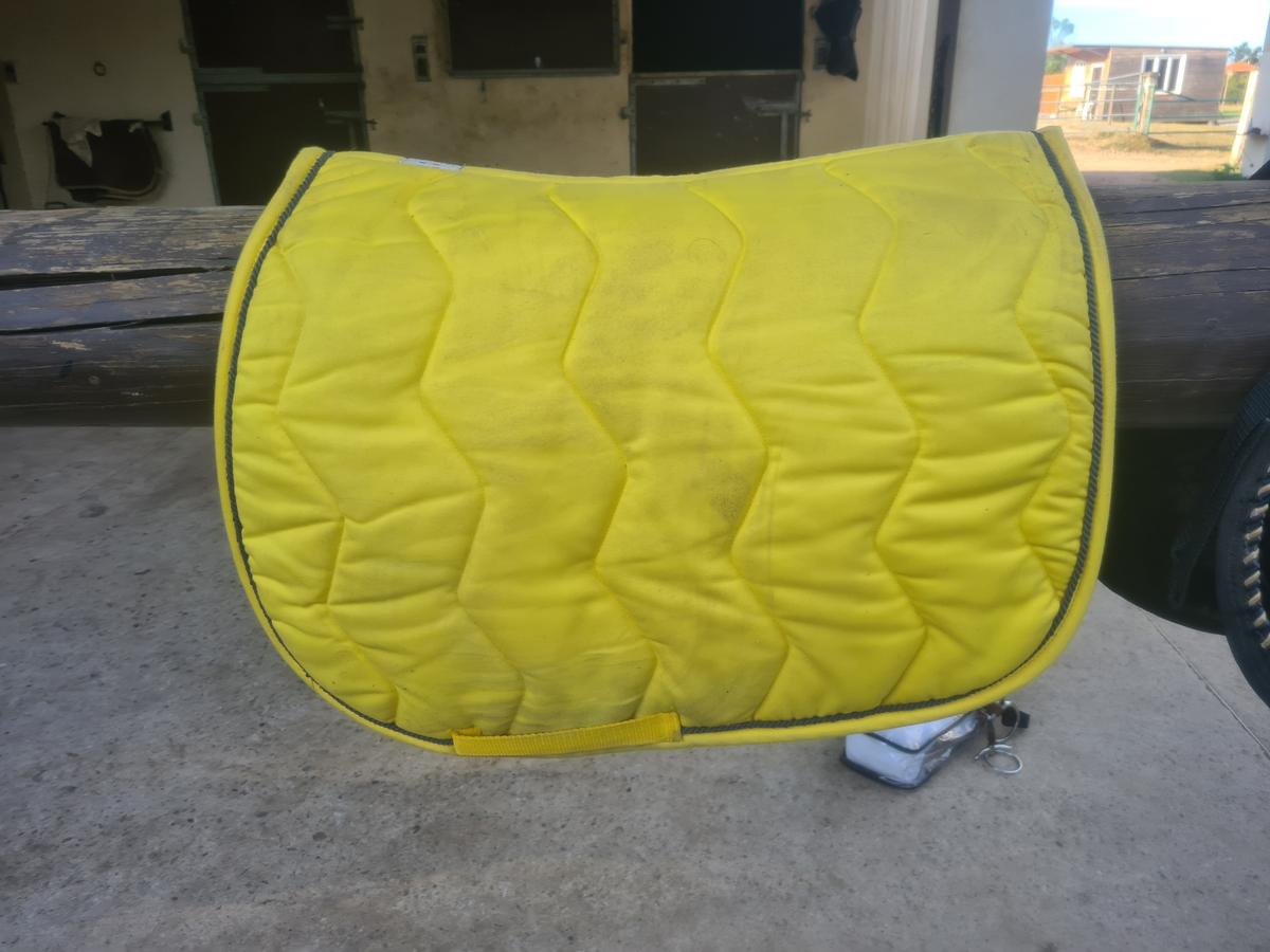 Tapis équithème jaune, porté quelques fois avec légères traces d'usure (passage de sangle),