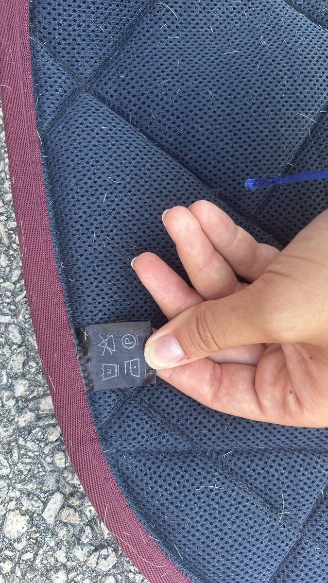 Tapis Mesh bleu marine avec liseré bordeaux Horse Pilot, ancienne collection.