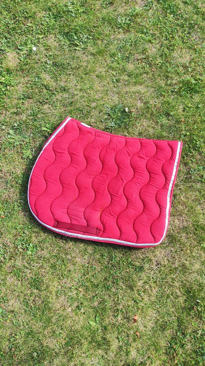 Ce tapis rouge est en bonne état, il vient de la marque equitheme, il correspond à un ancien modèle( acheter neuf a 45€ ).