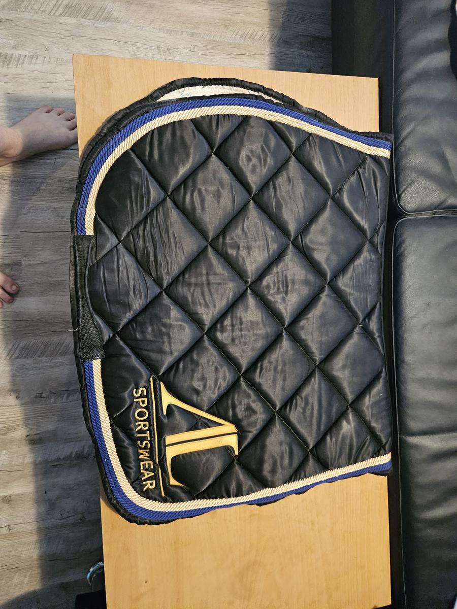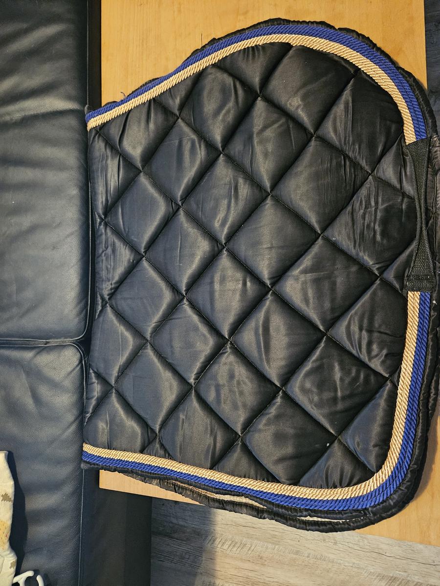 de couleur noir bleu roi et doré. Mis une vingtaine de fois, sera lavé avant l'envoi bien sûr,