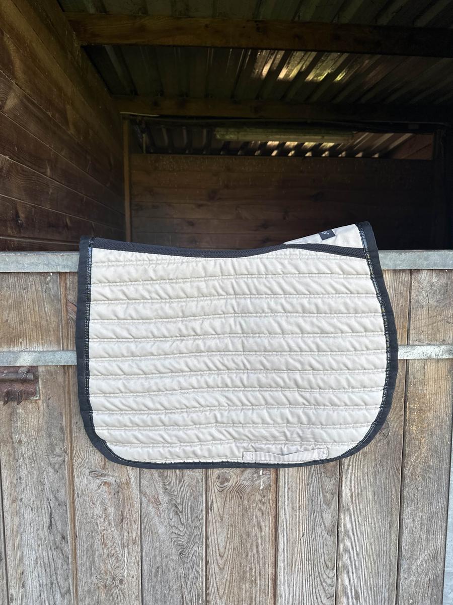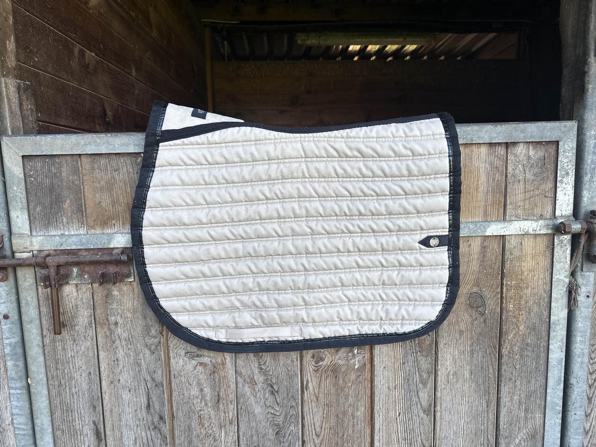 tapis porte une dizaine de fois taille cheval degarotte bien beige avec un liseret de vernis noir