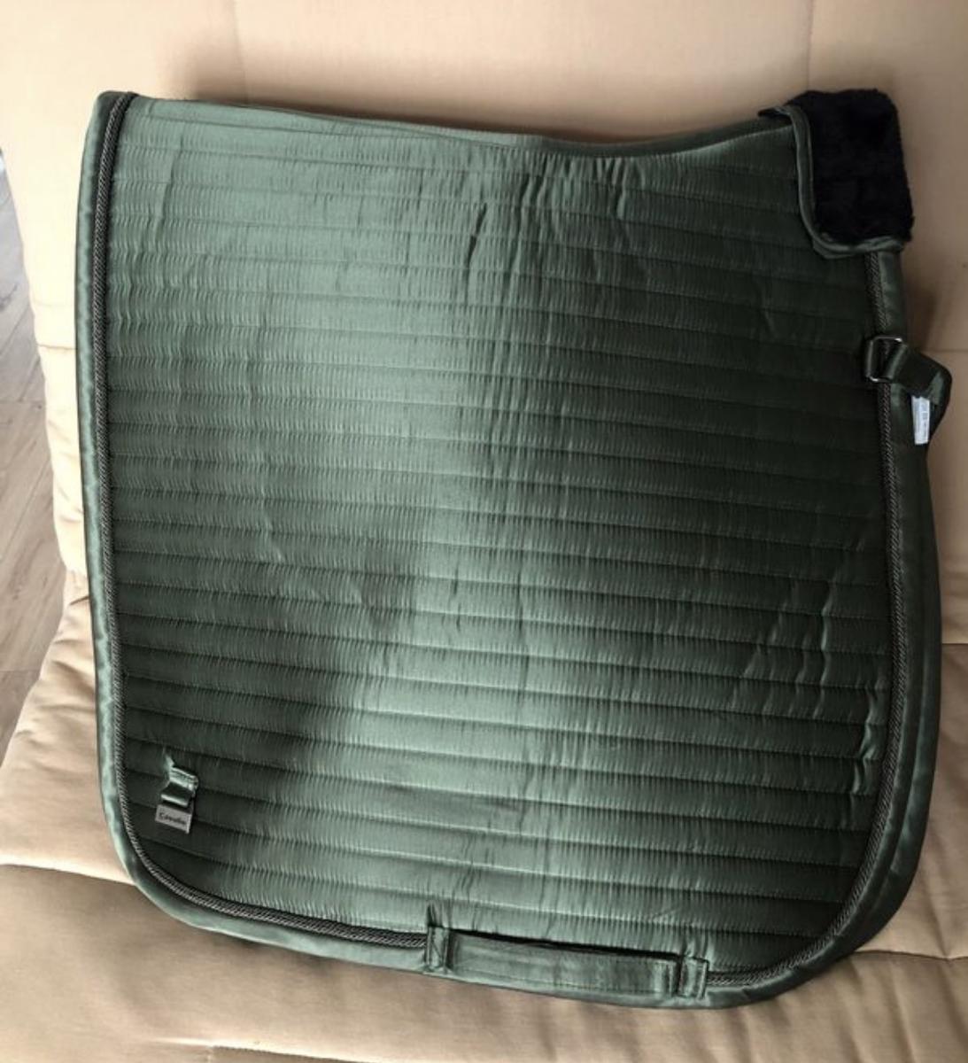 Tapis de dressage vert satiné de la marque Cavallo. Le mouton est amovible ainsi que les attaches. Utilisé 10 fois.