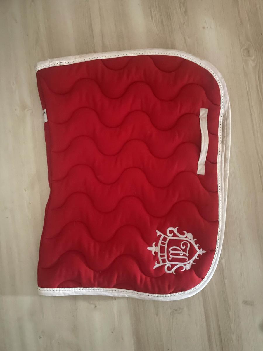 tapis Pénélope rouge taille cheval porter quelques fois mais en excellent état 👌🏻 la selle a légèrement décoloré au niveau du passage de sangle mais ne se voit pas une fois a cheval photo prise avec et sans flash 🥰