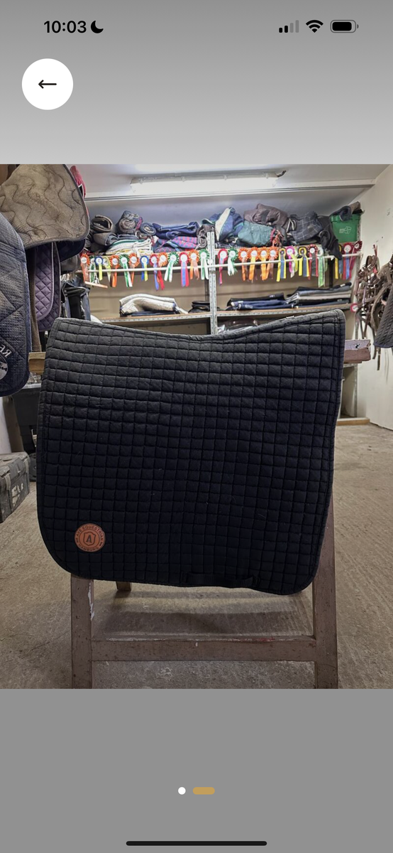 Tapis Ave&Me noir avec logo orange. Coupé dressage Excellent état, aucun défaut à signaler, n'a quasiment