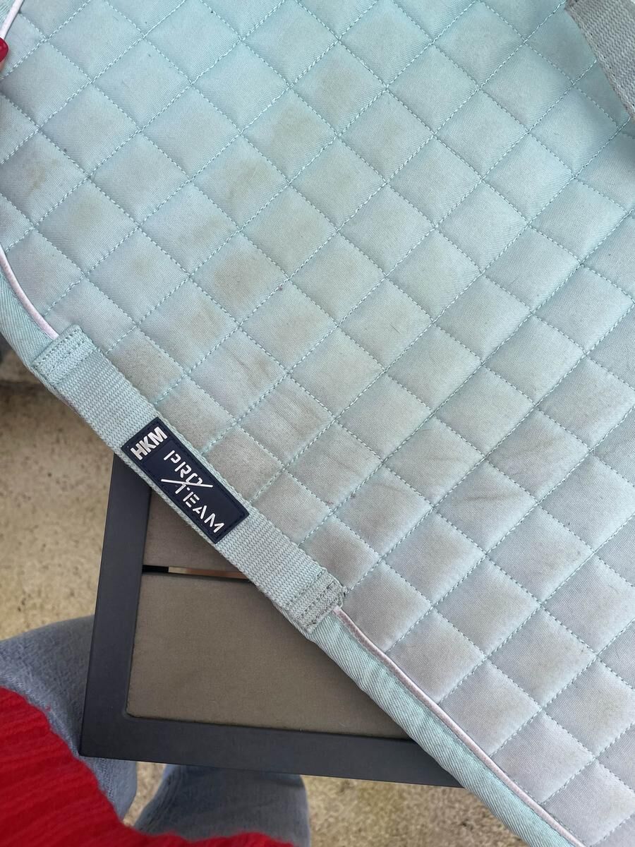 Tapis HKM bleu taille cheval avec moumoute bon état
