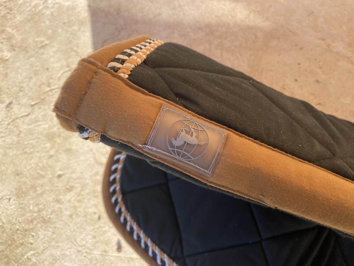 Ensemble tapis et amortisseur noir et camel, très bon état peu utilisé.
