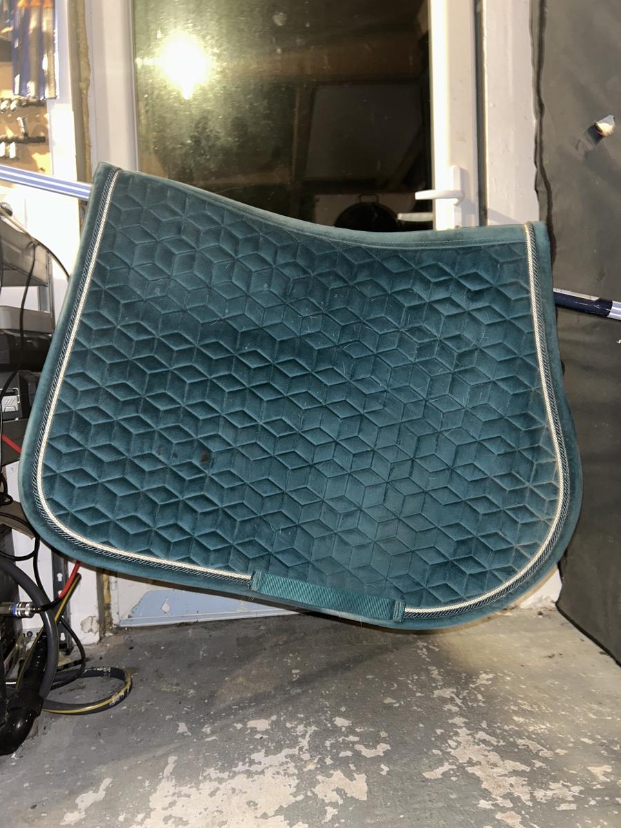 vend tapis kentucky taille cheval couleur émeraude très bon état malgré une toute petite noir peu porté coupe mixte
