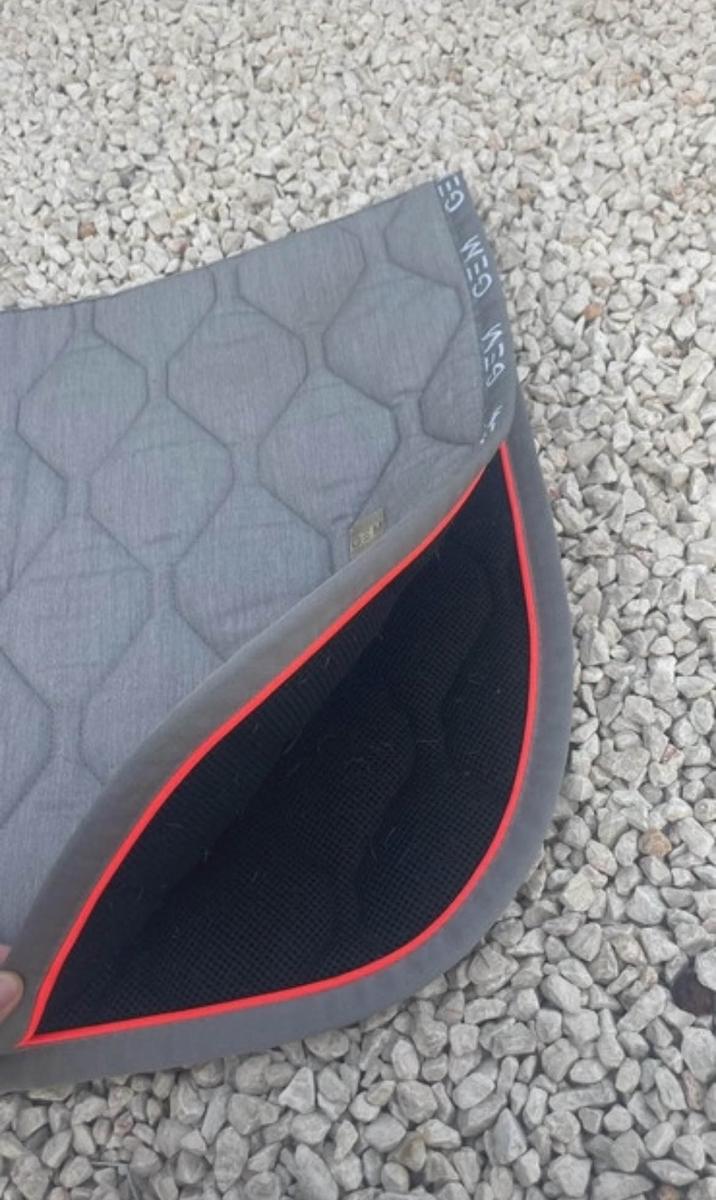 le tapis a été mis très peu de fois, quelques traces au niveau du passage de sangle et quelques bouloches au niveau du logo qui ne se voit presque pas