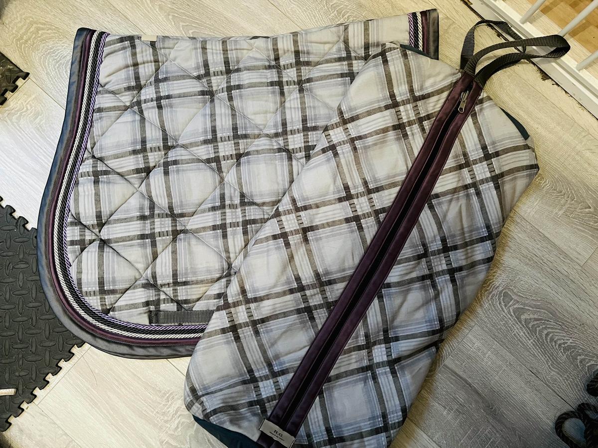 Ensemble Tapis + Housse de filet RG, assortis, madras Gris, jamais servi, état neuf.