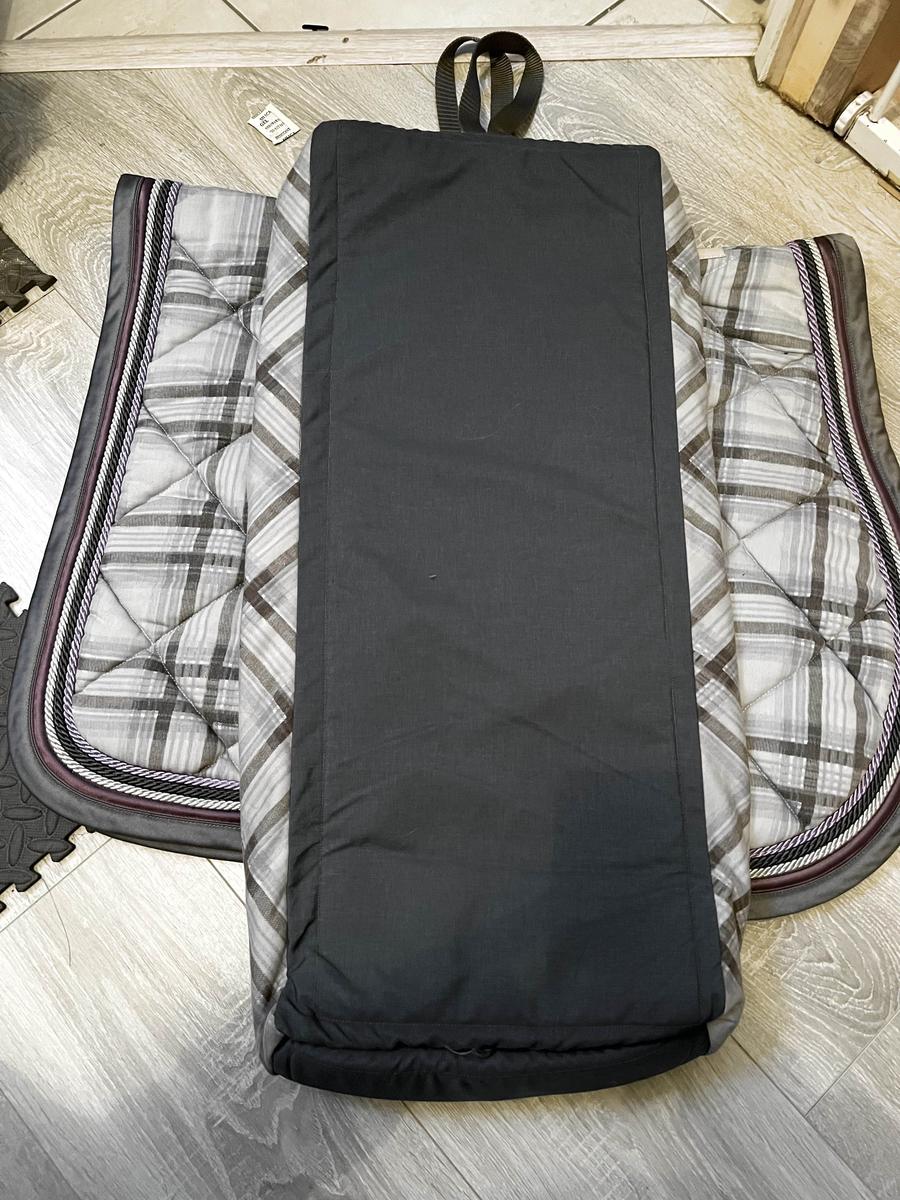 Ensemble Tapis + Housse de filet RG, assortis, madras Gris, jamais servi, état neuf.