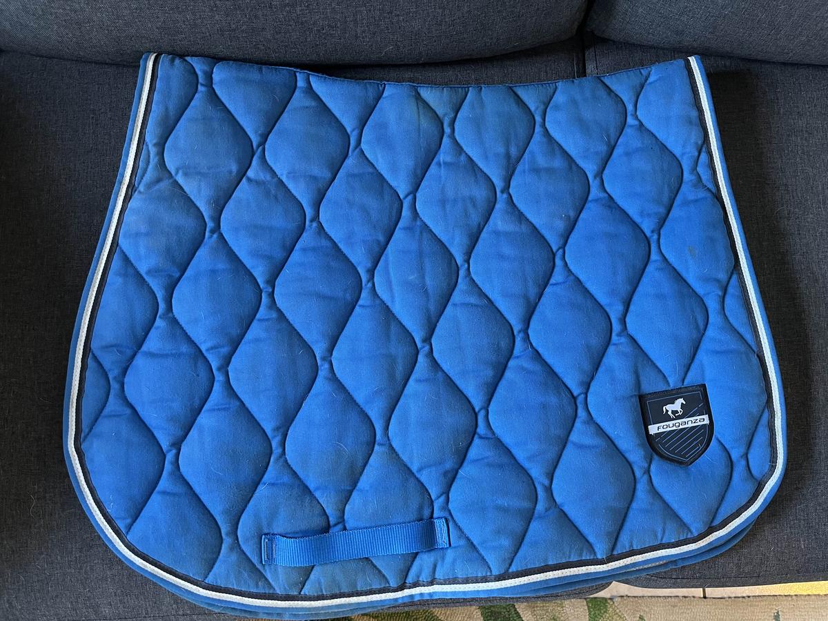 tapis décathlon bleu roi taille cheval en très bonne état ( un peu décoloré sur le passage de sangle mais une fois la sangle mise ça ne ce vois plus)