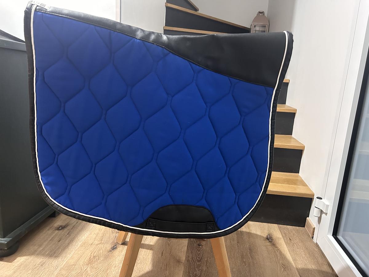 Tapis cheval GEM bleu Roy + simili cuir noir, peu utilisé