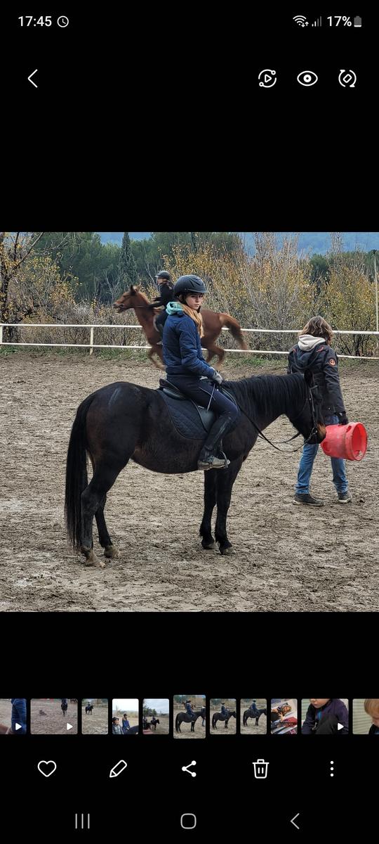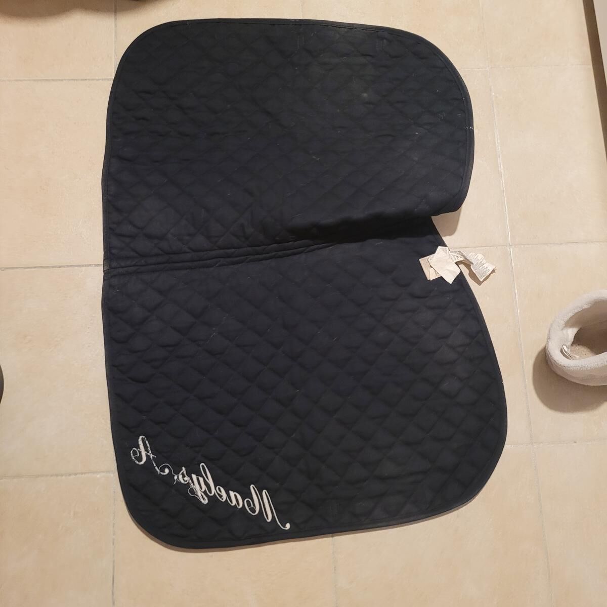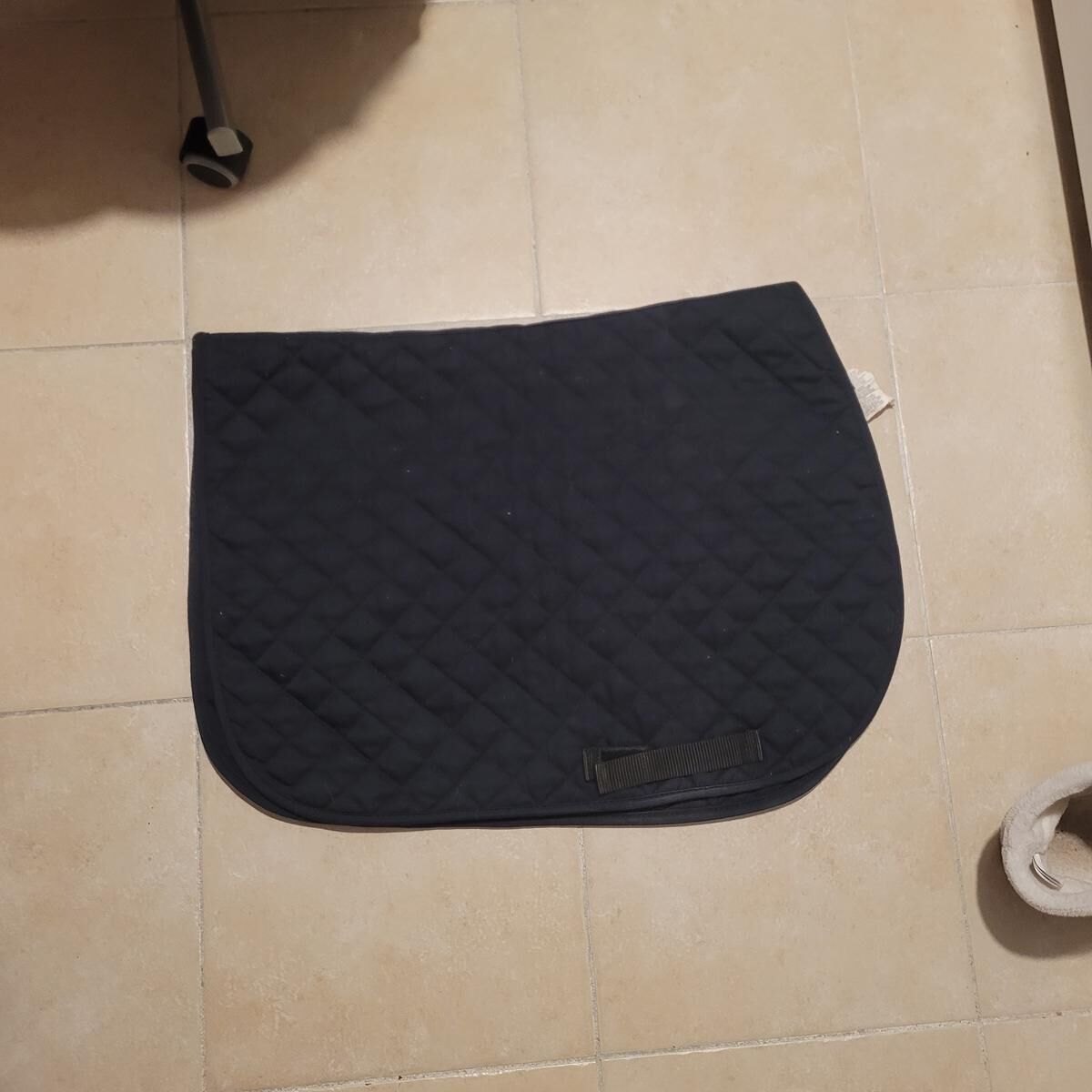 Tapis noir de chez décathlon, taille poney, il y a écrit mon prénom et mon initiale. c'est la raison pour laquelle