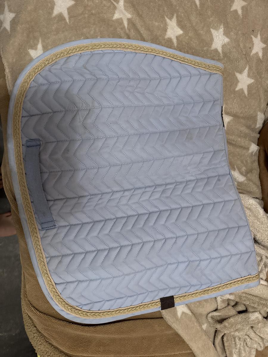 Tapis Equiteme bleue clair taille poney neuf seulement mis 2 fois les petite tache je le laverais pour qu’il parte