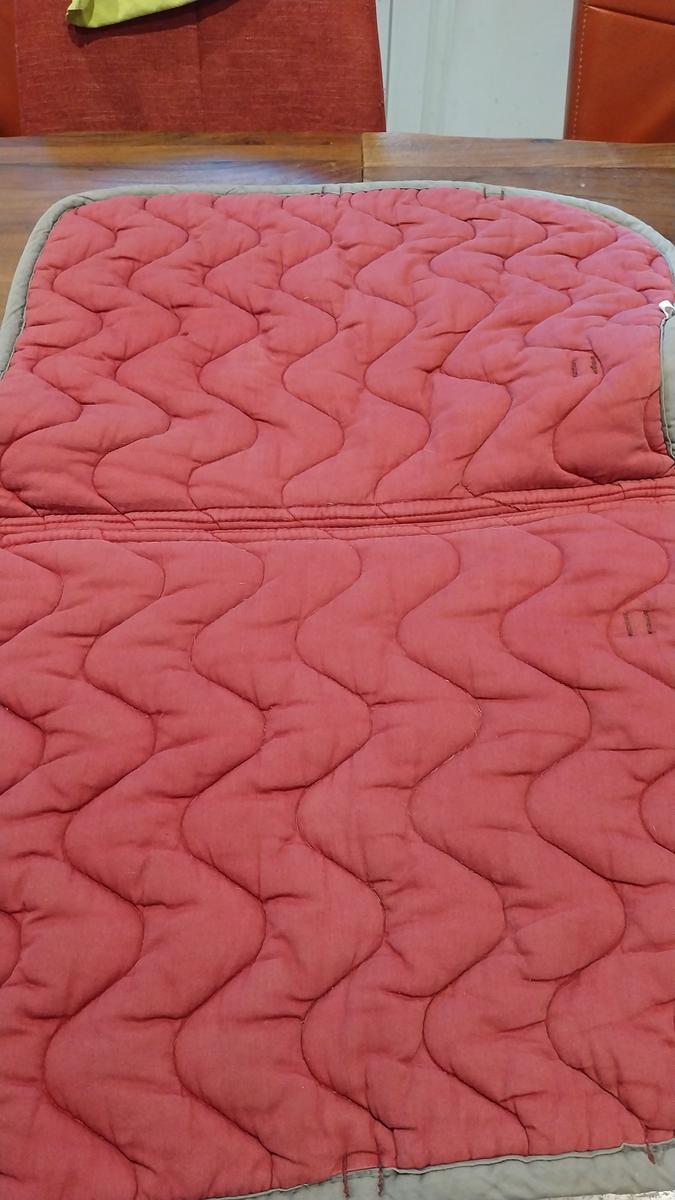 Couleur bordeau (a légèrement délavé), liseret gris.