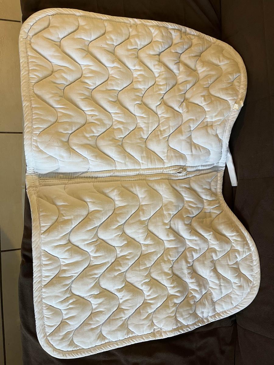 tapis avec quelques défauts : légère tache vers l’arrière du tapis et une au niveau de la sangle + petite tache à l’avant du tapis + à l’intérieur du tapis il y a une couture à céder (possibilité de réparation). les attaches sont en parfait état. .