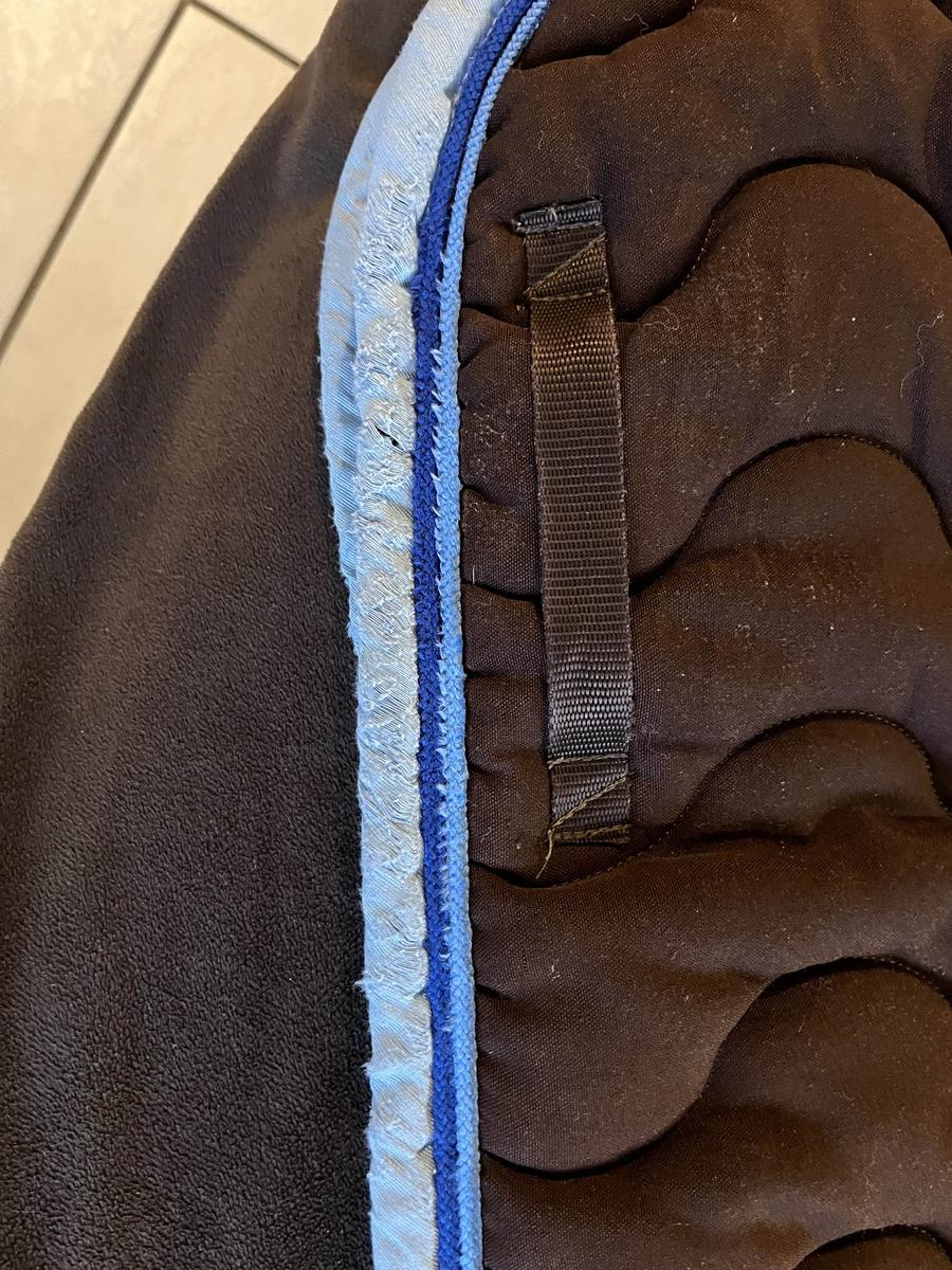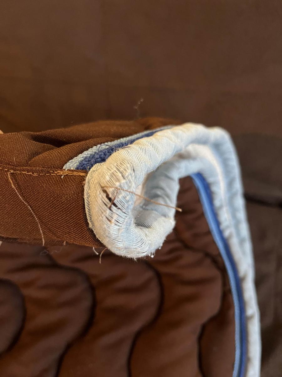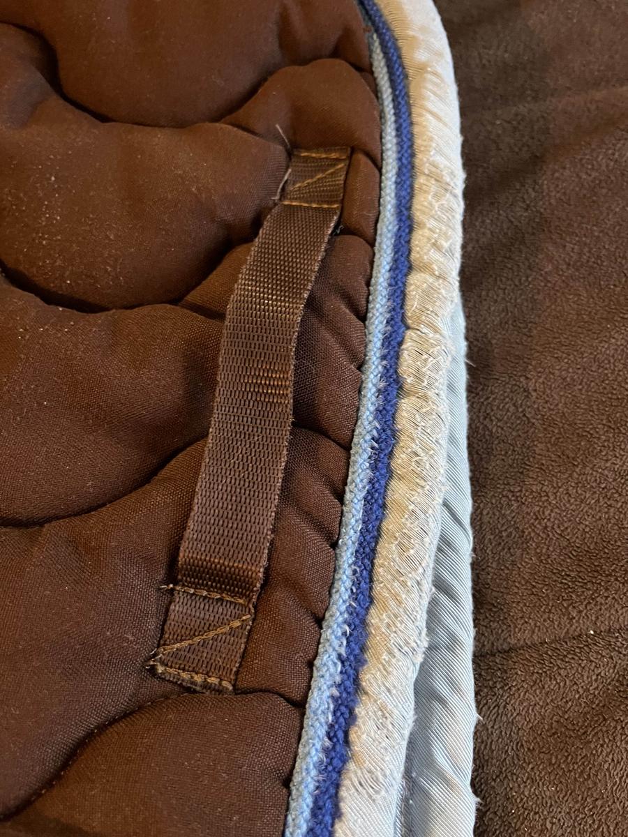 tapis en bon état, liserés un peu abîmé à cause de l’usure au niveau du garrot et de la sangle.