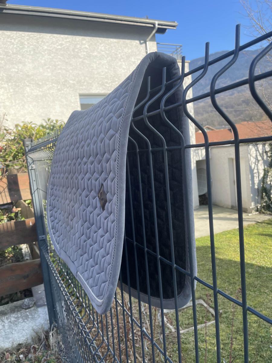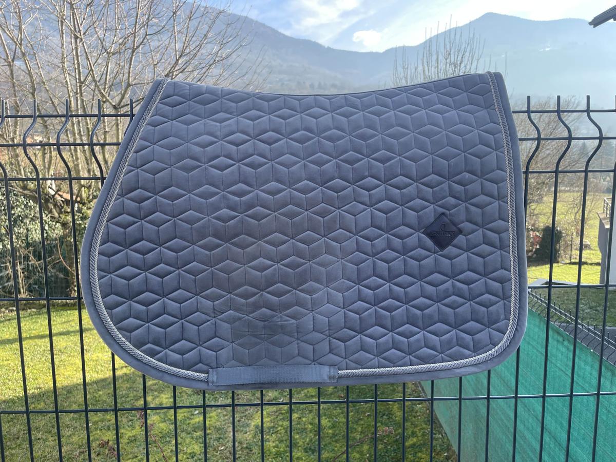Tapis marque Kentucky, très bon état, en velours couleur gris, taille cheval