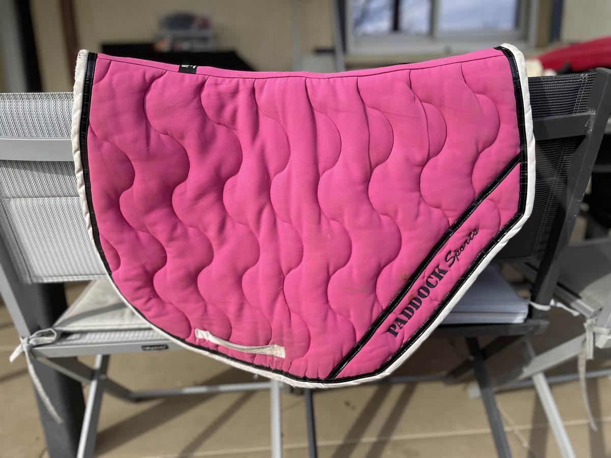 Tapis paddock rose coupe sport taille poney ! bon état, quelques traces d’usure au passage de sangle d’où le petit prix pour départ rapide