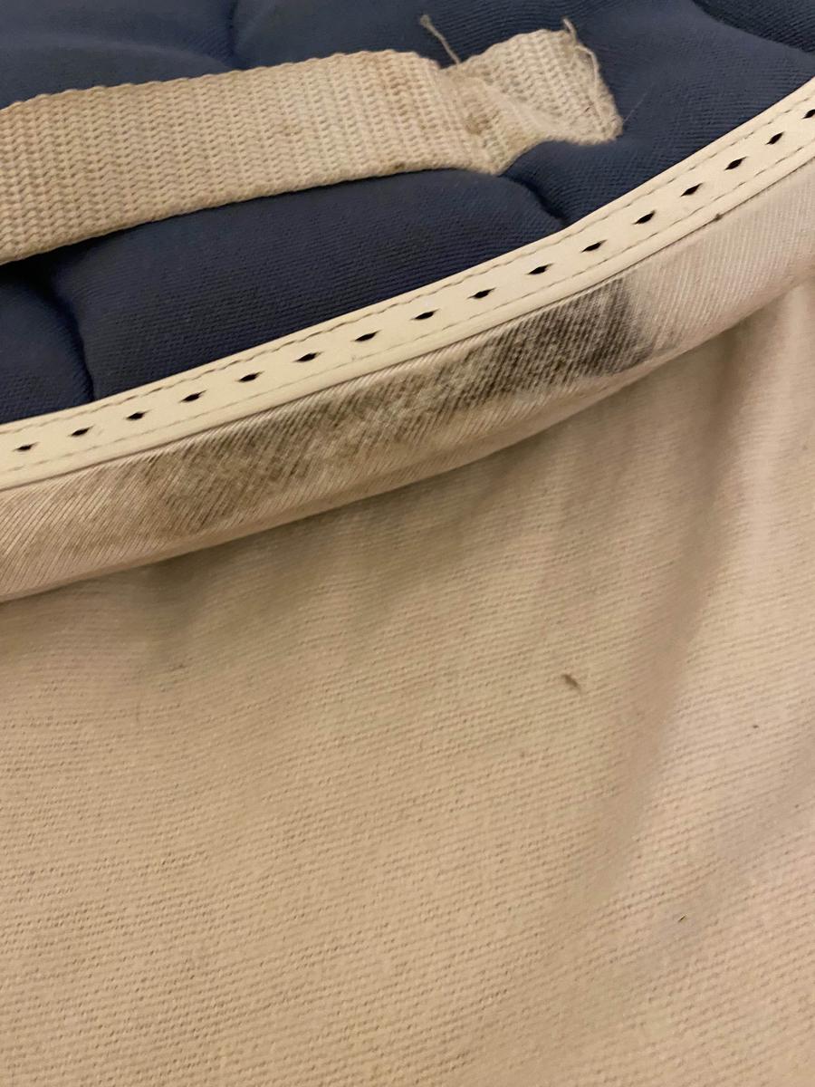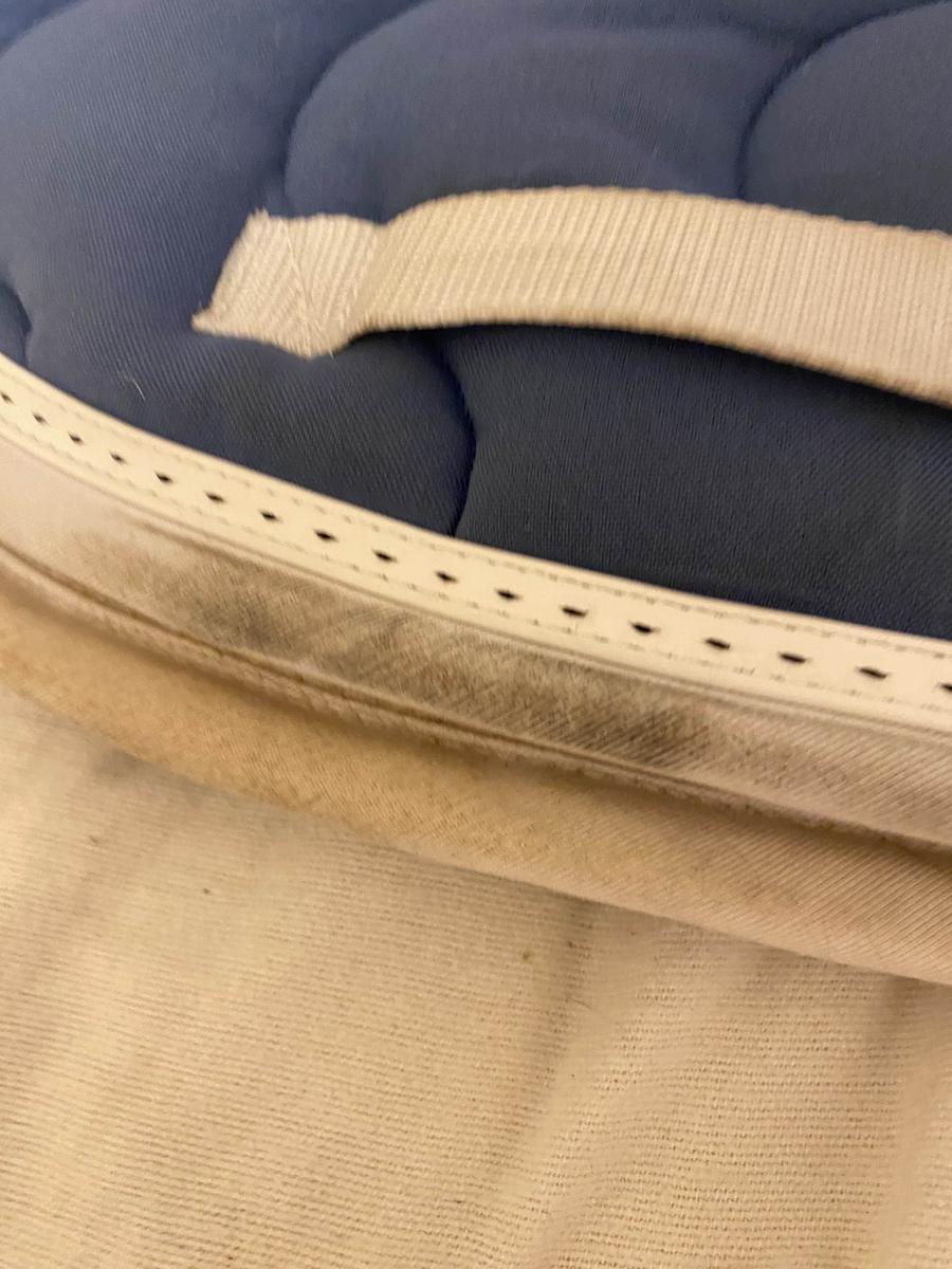 Tapis Pénélope coupé sport bleu ciel. Porté 4 fois. Sera laver avant envoie. Taille FULL (cheval) mais convient a un grand poney C.